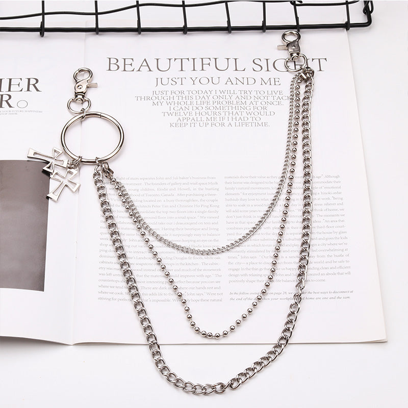 Style: Women Silver Three Wallet Chain With Cross Charms Mens Silver Jeans Chain 3 Pants Cha