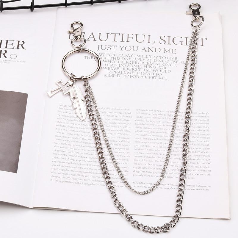 Silver Two Wallet Chain With Cross Feather Charm Mens Silver Jeans Chain 2 Pants Chain For Girl2
