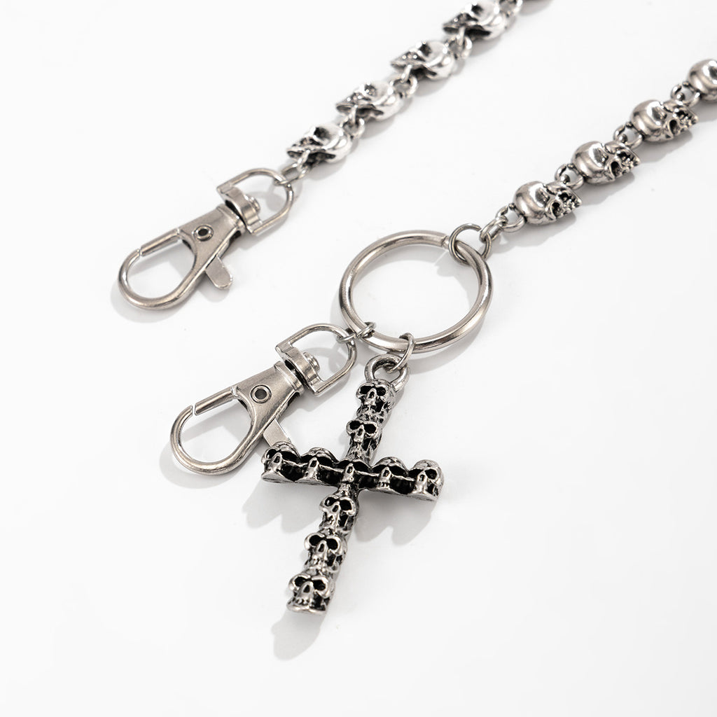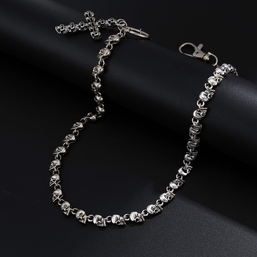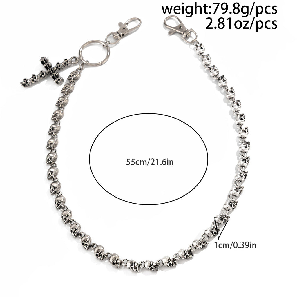 Introduce a bold fusion of dark symbolism and minimalist design with the Cool Wallet Chain, a striking accessory that captures the essence of rebellion and artistry. This unique Skull Wallet Chain features a 55cm chain constructed from interconnected alloy skulls, each meticulously detailed to create a continuous, eye-catching statement. Complementing the chain is a layered cross charm, itself composed of interlinked miniature skulls, adding a second layer of symbolic depth and texture. This versatile Cross Wallet Chain is designed for those who appreciate meaningful details, subculture aesthetics, and versatile wearability, making it a standout piece for a wide range of personal styles.