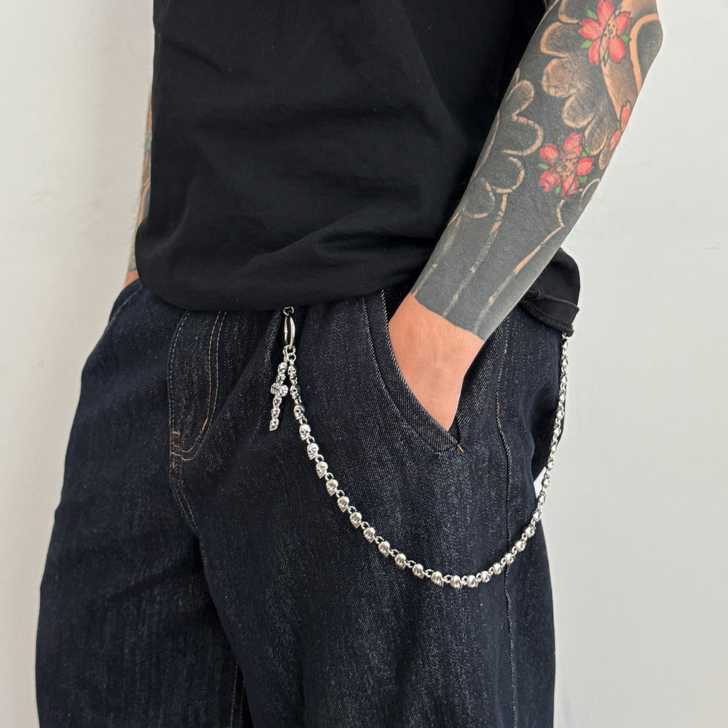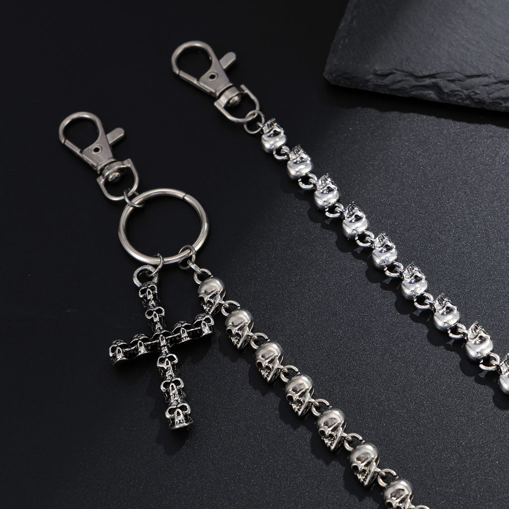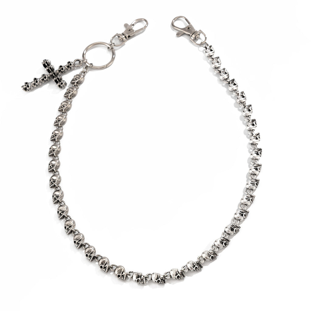 Introduce a bold fusion of dark symbolism and minimalist design with the Cool Wallet Chain, a striking accessory that captures the essence of rebellion and artistry. This unique Skull Wallet Chain features a 55cm chain constructed from interconnected alloy skulls, each meticulously detailed to create a continuous, eye-catching statement. Complementing the chain is a layered cross charm, itself composed of interlinked miniature skulls, adding a second layer of symbolic depth and texture. This versatile Cross Wallet Chain is designed for those who appreciate meaningful details, subculture aesthetics, and versatile wearability, making it a standout piece for a wide range of personal styles.