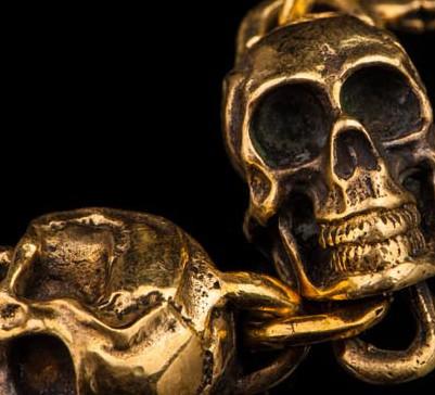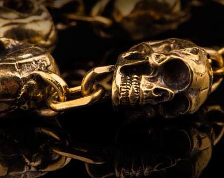 Design: Silver Brass Stainless Steel Biker Trucker Skull Heavy Gothic Skulls Mens Bracelet Biker Jewelry