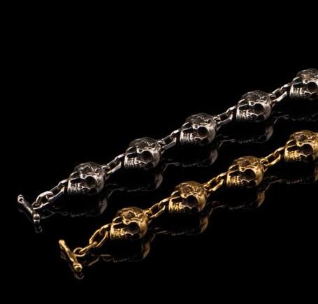 Style: Silver Brass Stainless Steel Biker Trucker Skull Heavy Gothic Skulls Mens Bracelet Biker Jewelry