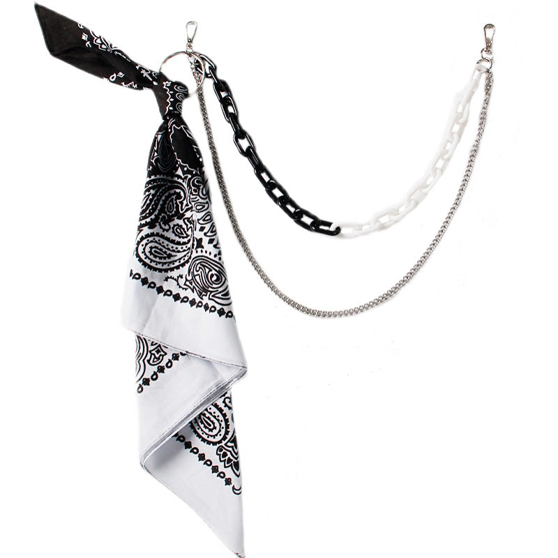 White Paisley Bandana Resin Trousers Chain Pants Chain Biker Kerchief Headscarf Jeans Chains