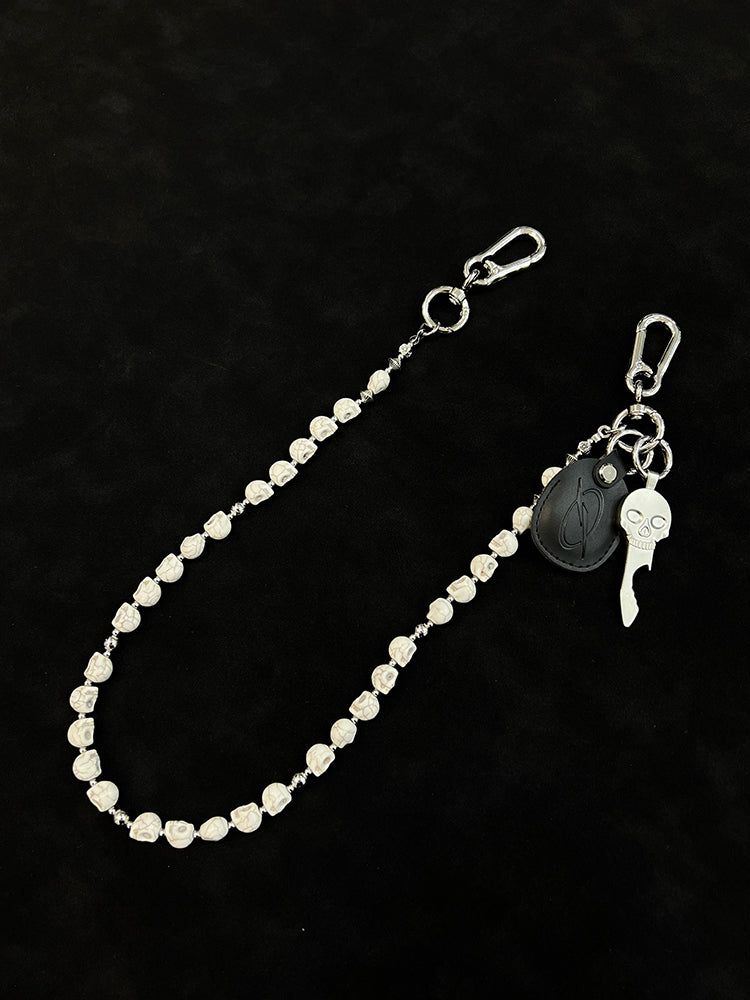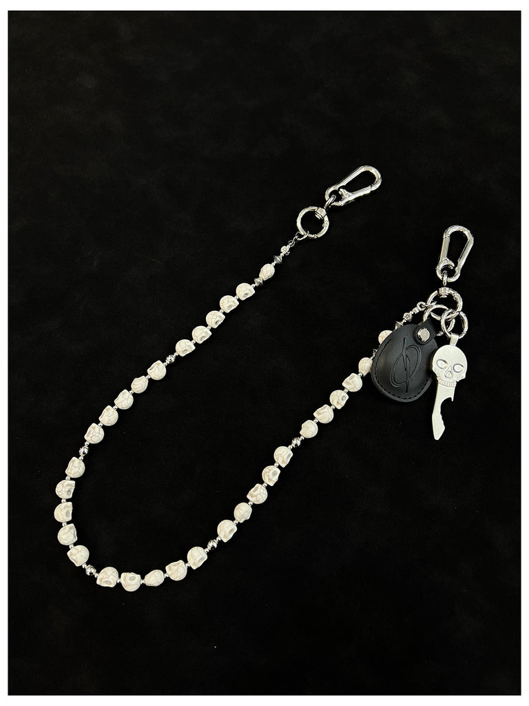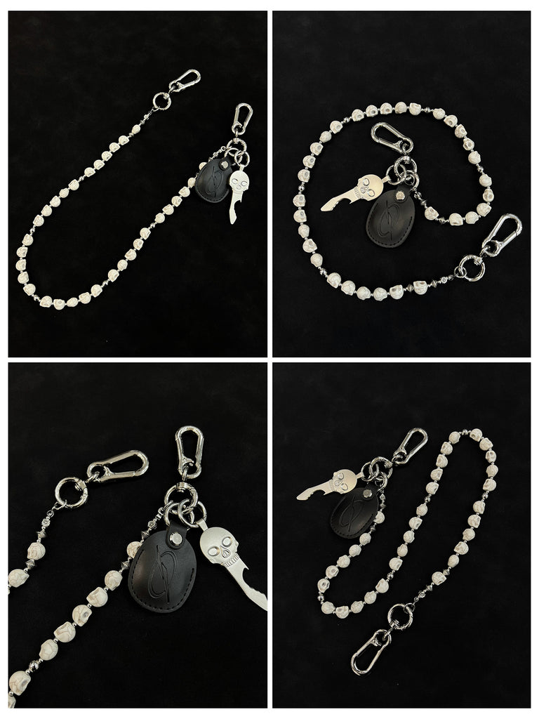 Unleash your inner rebel with our striking Skull Head Wallet Chain, a masterpiece of dark elegance that commands attention. This 78cm chain features an arresting design of meticulously carved white stone skulls, beautifully contrasted with delicate alloy plum blossom beads. The inclusion of a functional skull-shaped bottle opener makes this Skull Wallet Chains collection both visually dramatic and practically indispensable for social occasions.