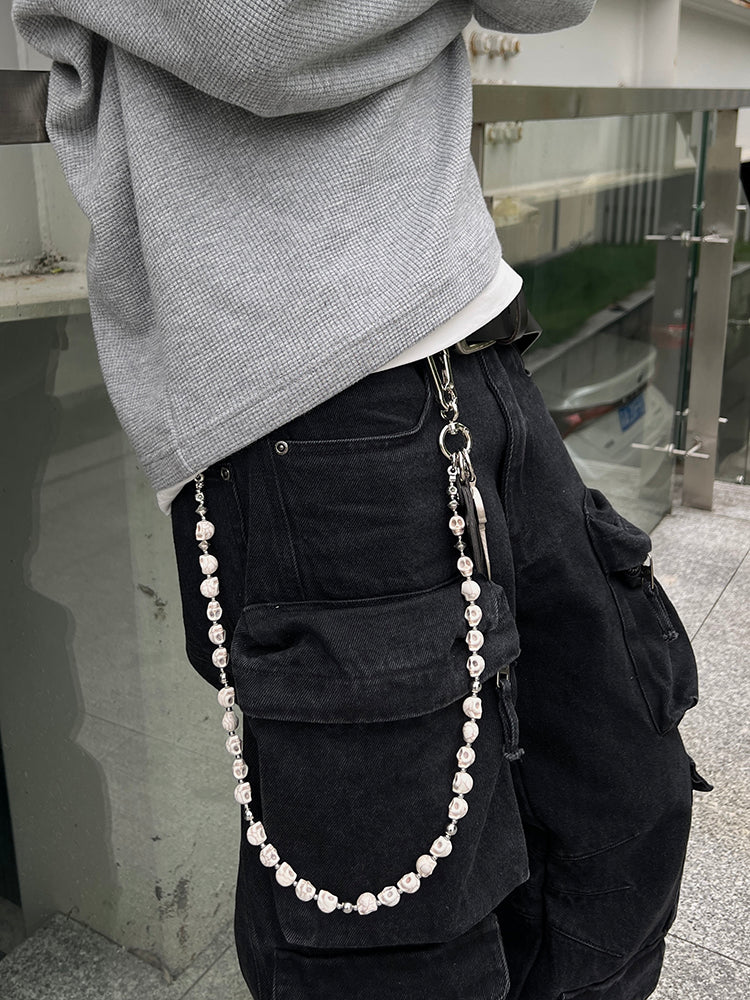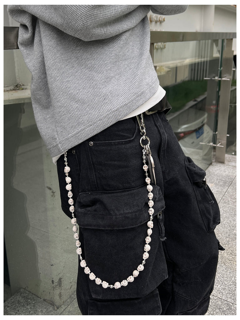 Skull Head Wallet Chain - Gothic Elegance in Stone