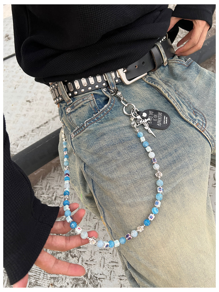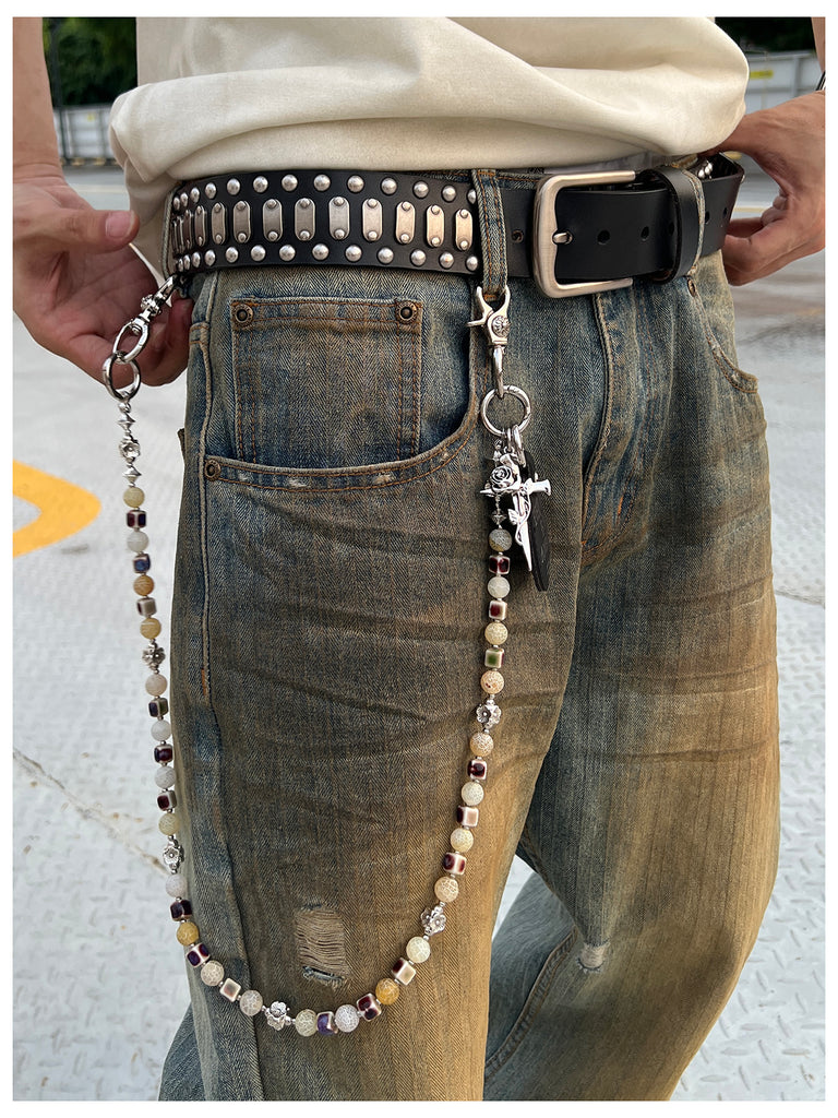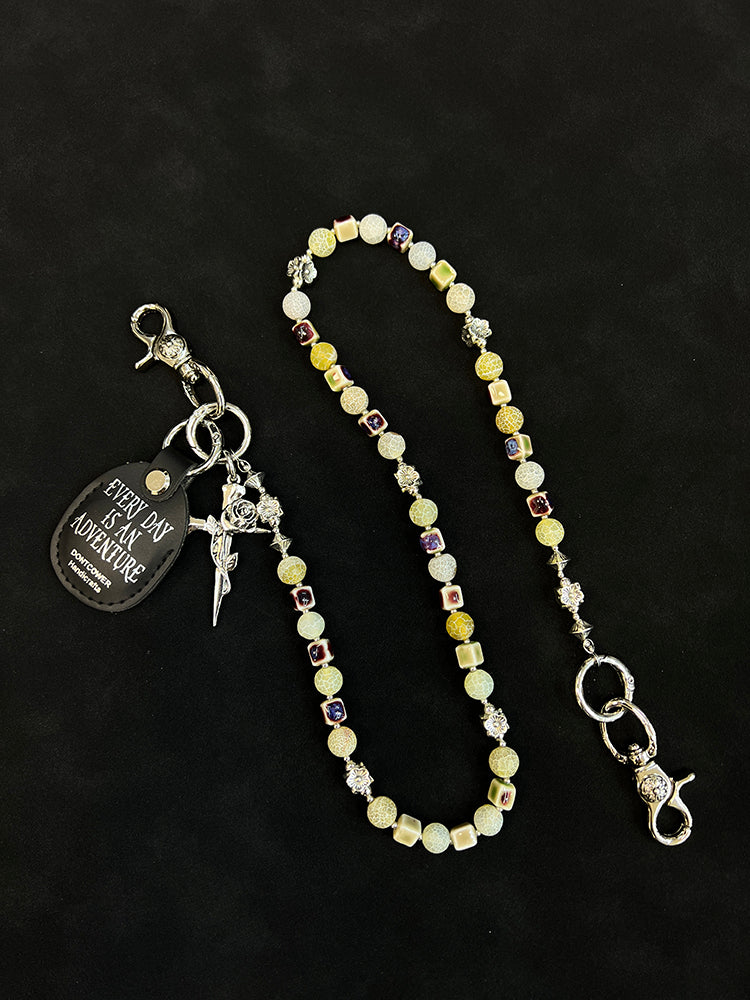 Style: Yellow Ball Pants Chain Ball Wallet Chain Stone Beaded Wallet Chain Cross Bead Wallet Chain