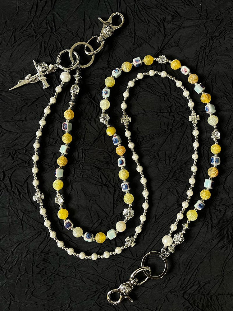 Style: Yellow Ball Pants Chain Cross Ball Wallet Chain Stone Beaded Wallet Chain Bead Wallet Chain