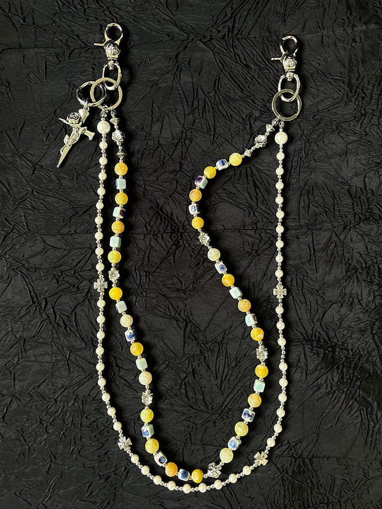 Style: Yellow Ball Pants Chain Cross Ball Wallet Chain Stone Beaded Wallet Chain Bead Wallet C