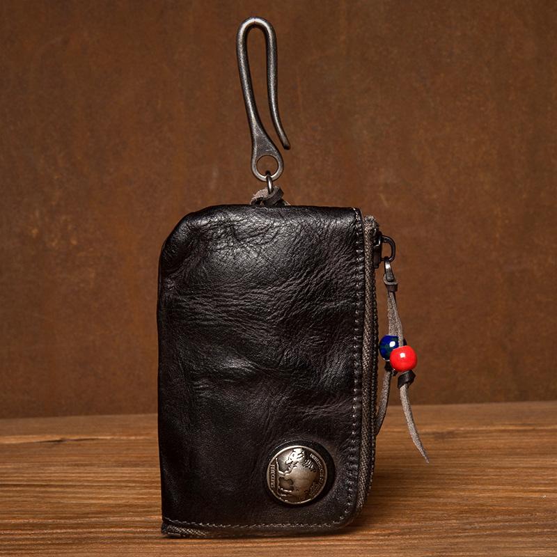 Design: Black Leather Mens Small Car Key Wallet Dark Brown Key Holder Coin Purse Brown Card Holder For Men