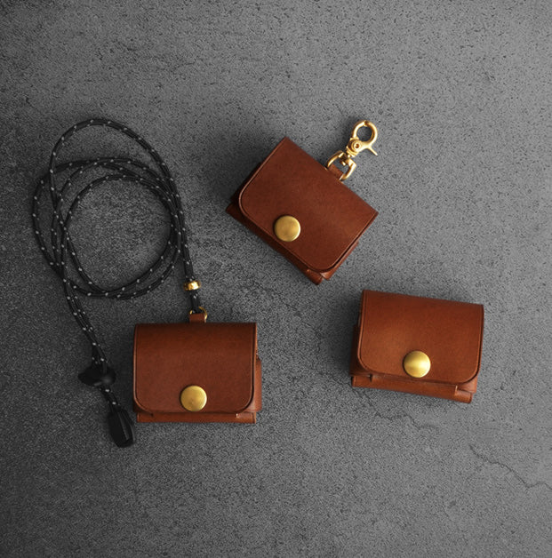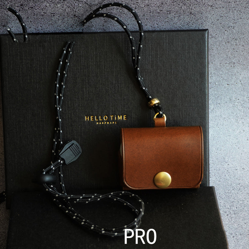 Style: Brown Mens Handmade Leather AirPods Pro Case With Clip For Men and Women