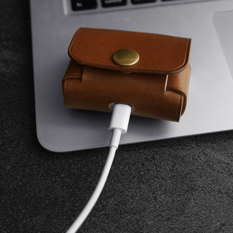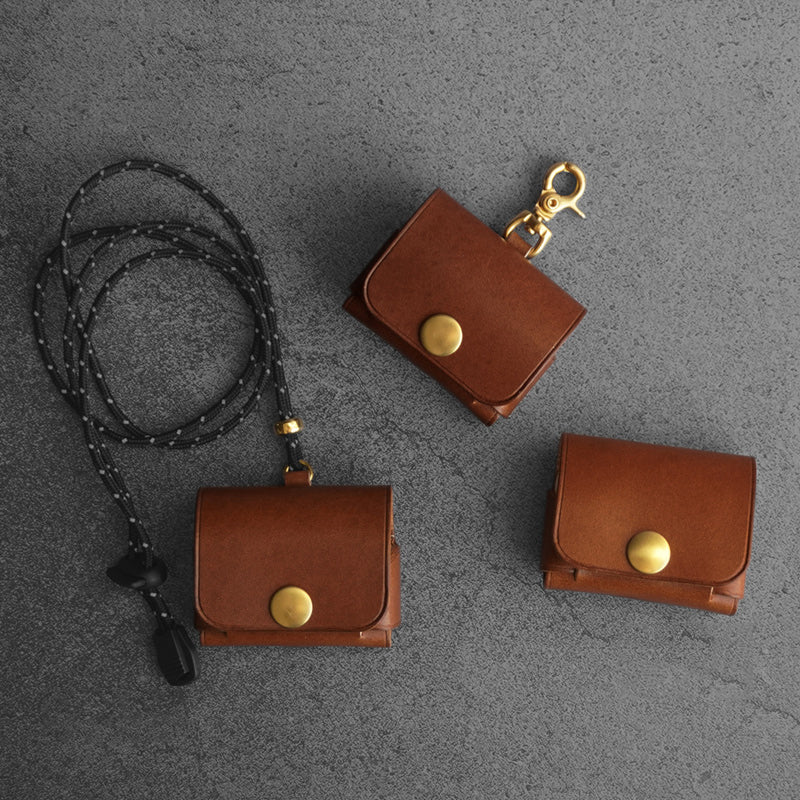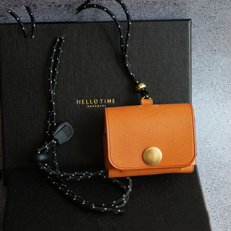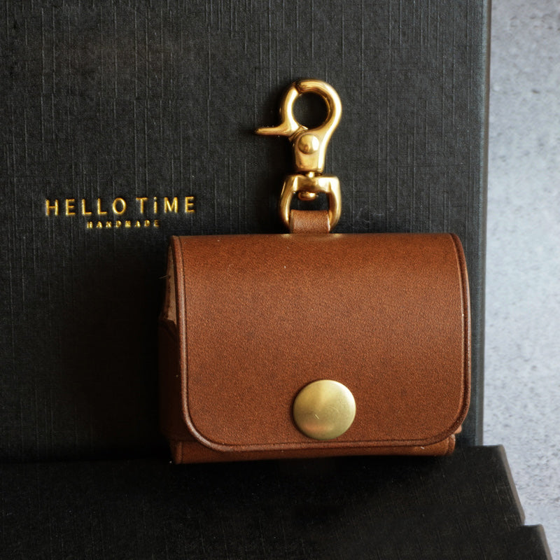 Design: Brown Mens Handmade Leather AirPods Pro Case With Clip For Men and Women