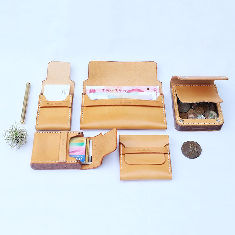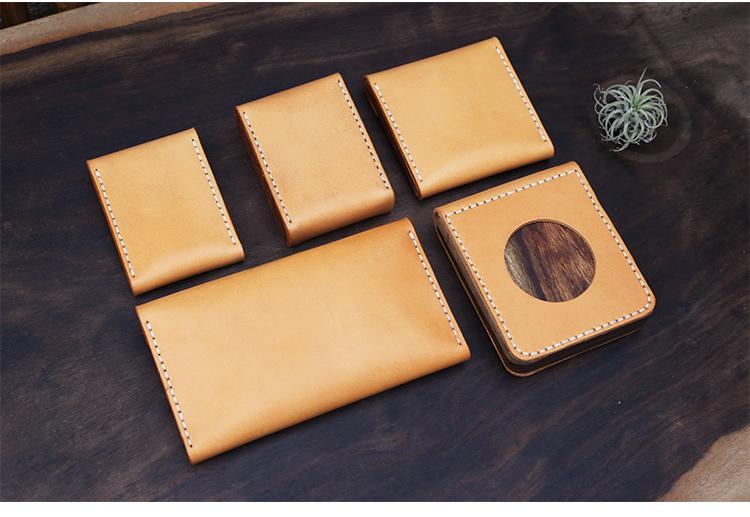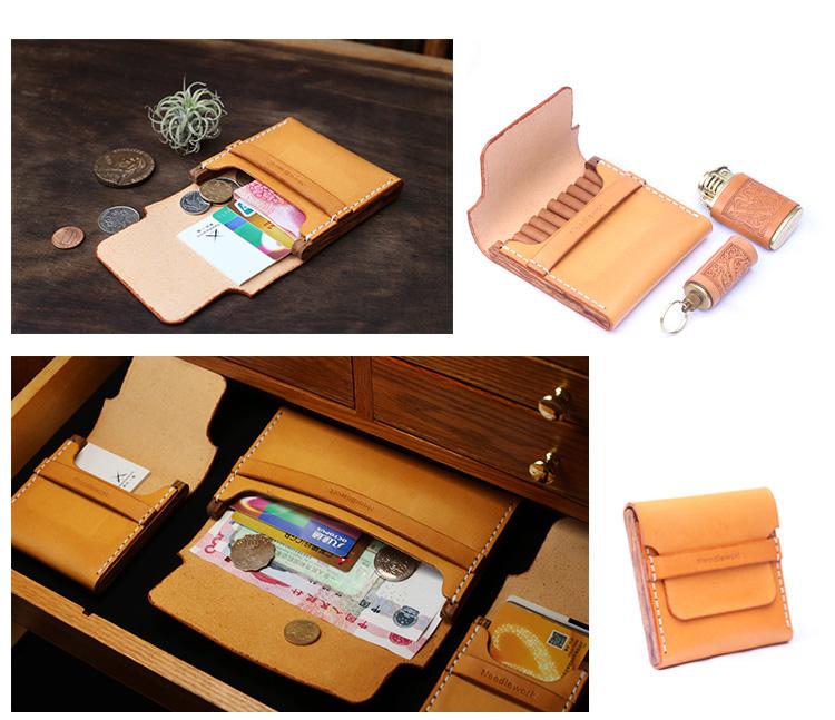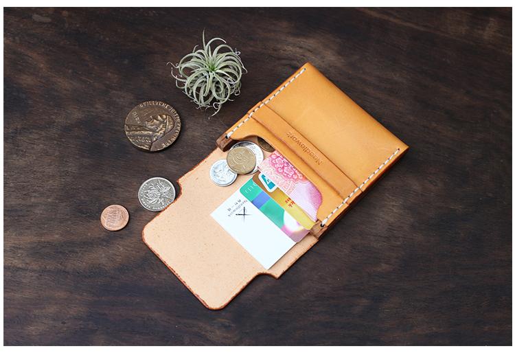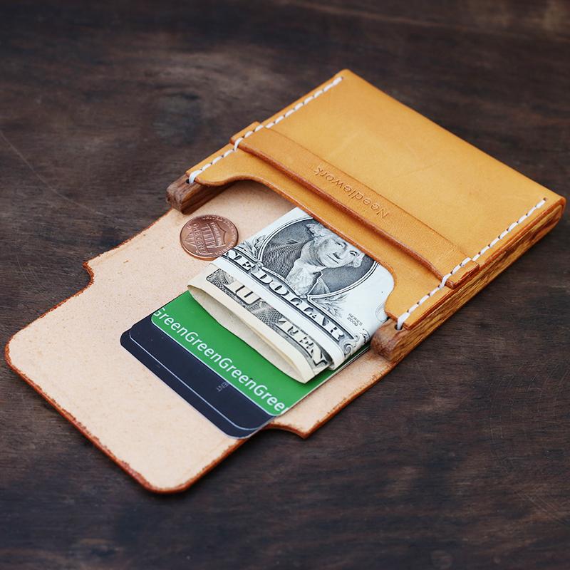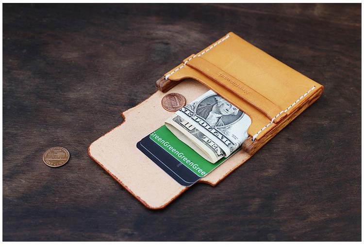 Design: Cool Wooden Brown Leather Mens Wallet Small Card Holder Coin Wallet for Men