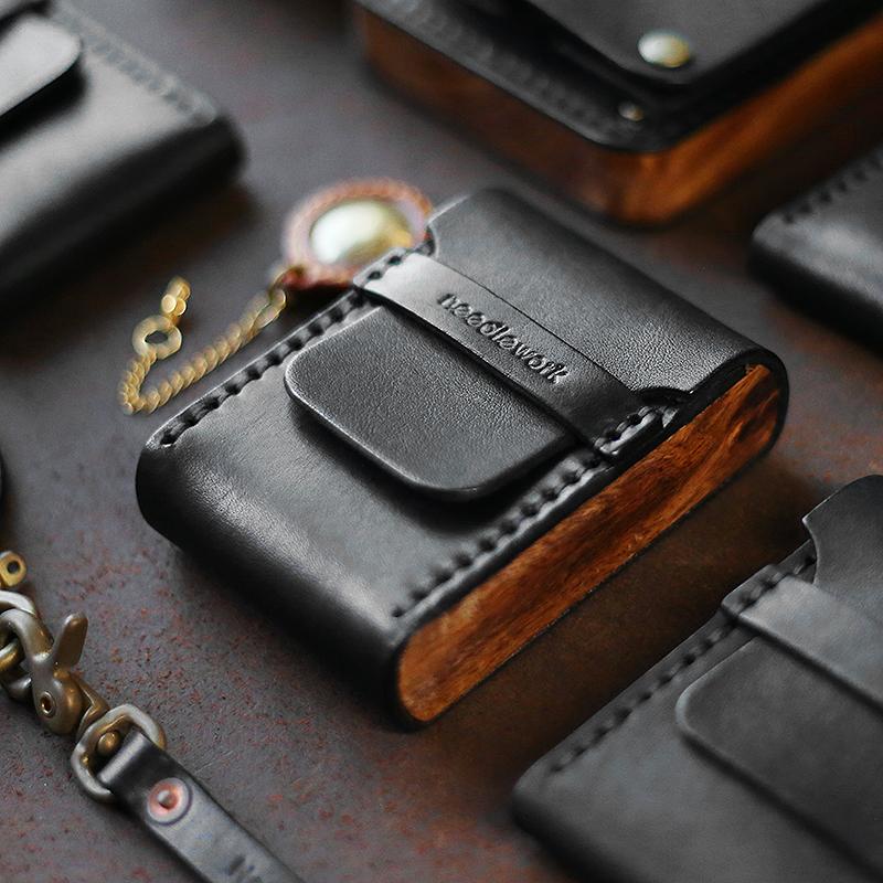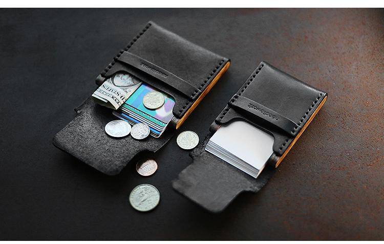 Cool Wooden Leather Black Mens Wallet Small Card Holder Coin Wallet for Men