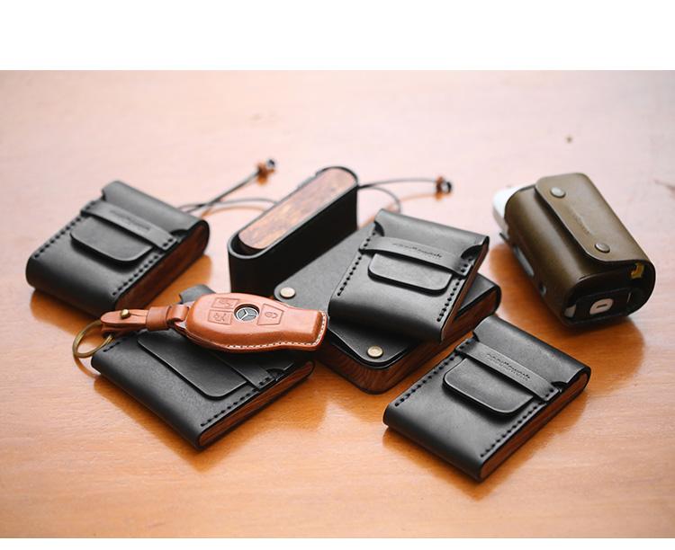 Design: Cool Wooden Leather Mens Wallet Small Card Holder Coin Wallet for Men