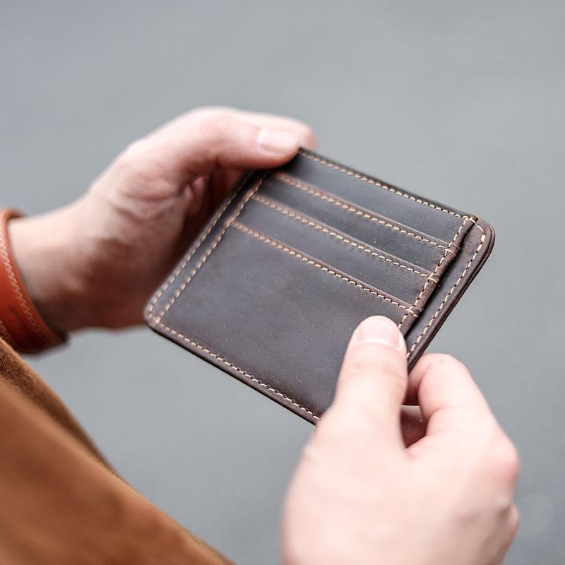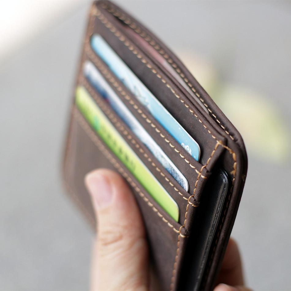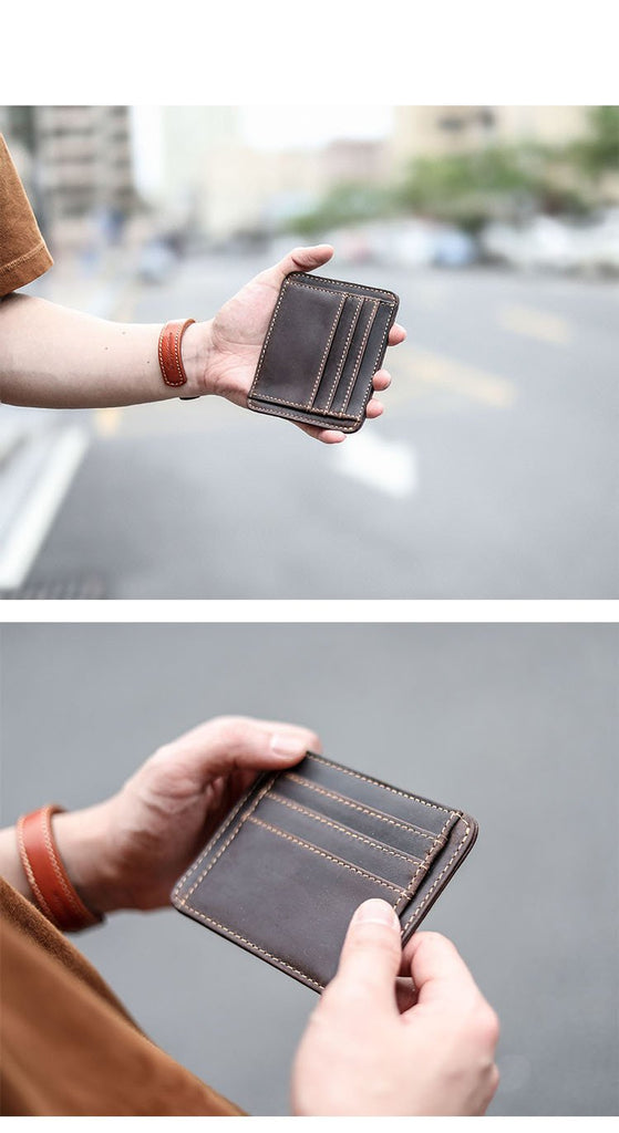 Style: Dark Brown Slim Leather Mens Card Wallet Small Card Holder Front Pocket Wallet For Men
