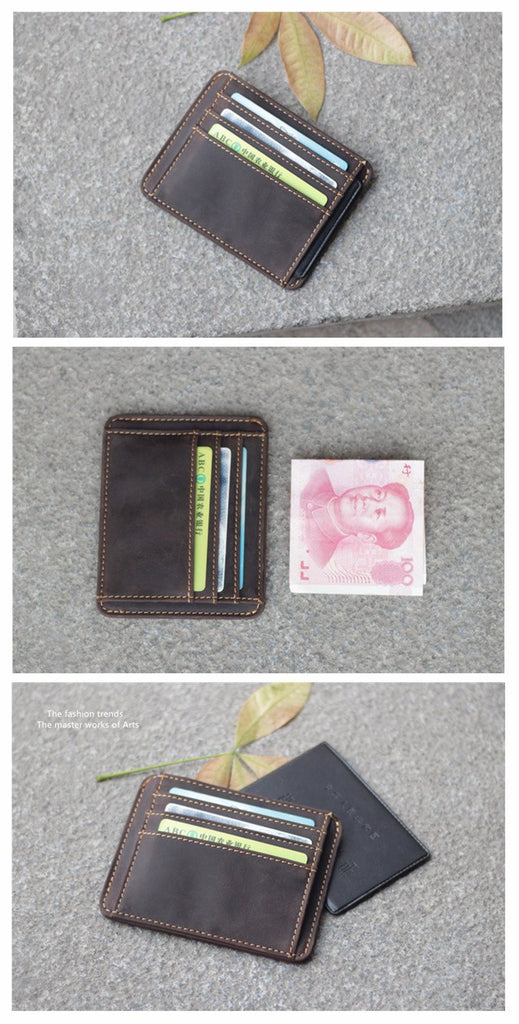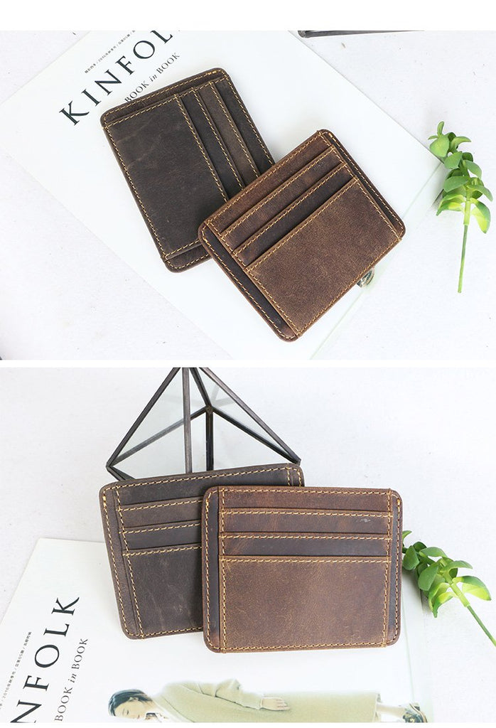 Design: Dark Brown Slim Leather Mens Card Wallet Small Card Holder Front Pocket Wallet For Men