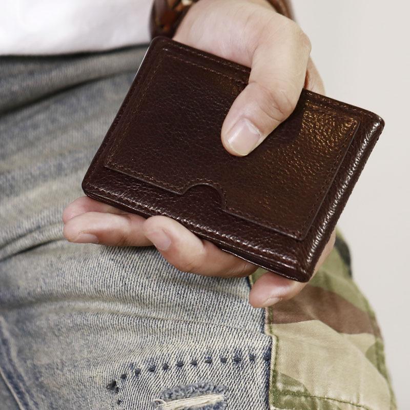 Style: Genuine Leather Mens Cool Black Short Leather Wallet Men Small Wallets Card Wallet License Holder for Men