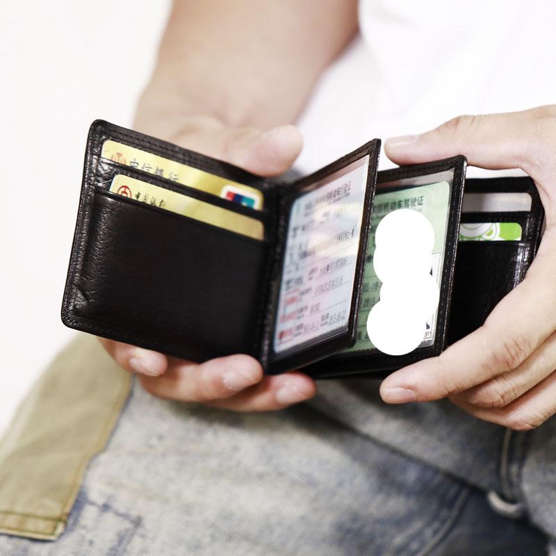 Design: Genuine Leather Mens Cool Black Short Leather Wallet Men Small Wallets Card Wallet License Holder for Men