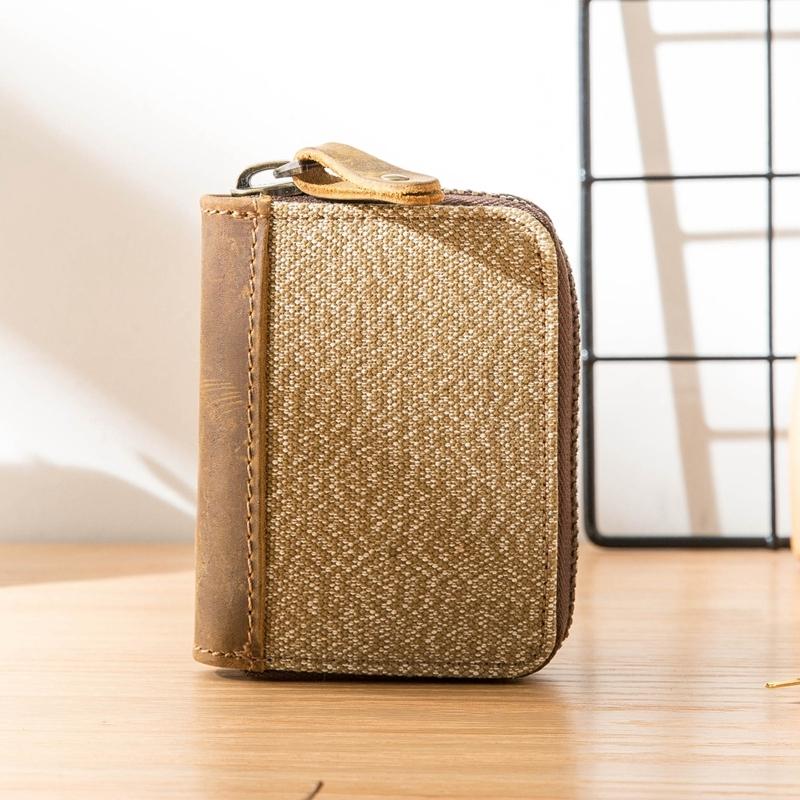 Design: Gray Cool Leather Mens Light Brown Small Wallets Ultra Thin Bifold Card Wallet Coin Purse for Men