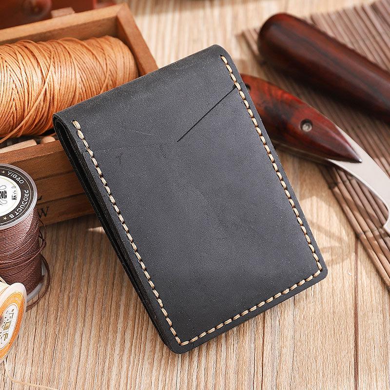 Handmade Black Leather Mens Licenses Wallet Personalized Bifold License Cards Wallets for Men
