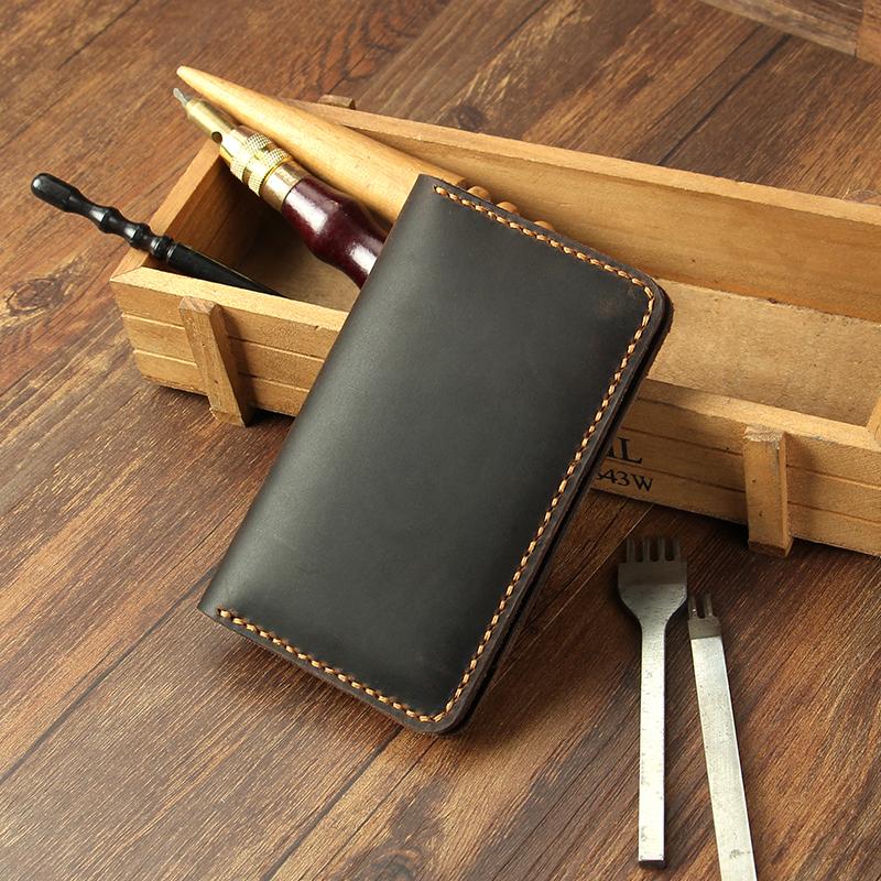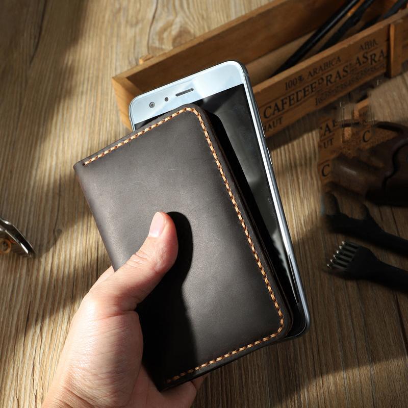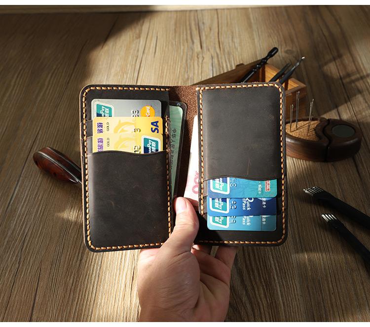 Design: Handmade Coffee Leather Mens Card Holders Wallet Personalized Bifold Card Wallets for Men