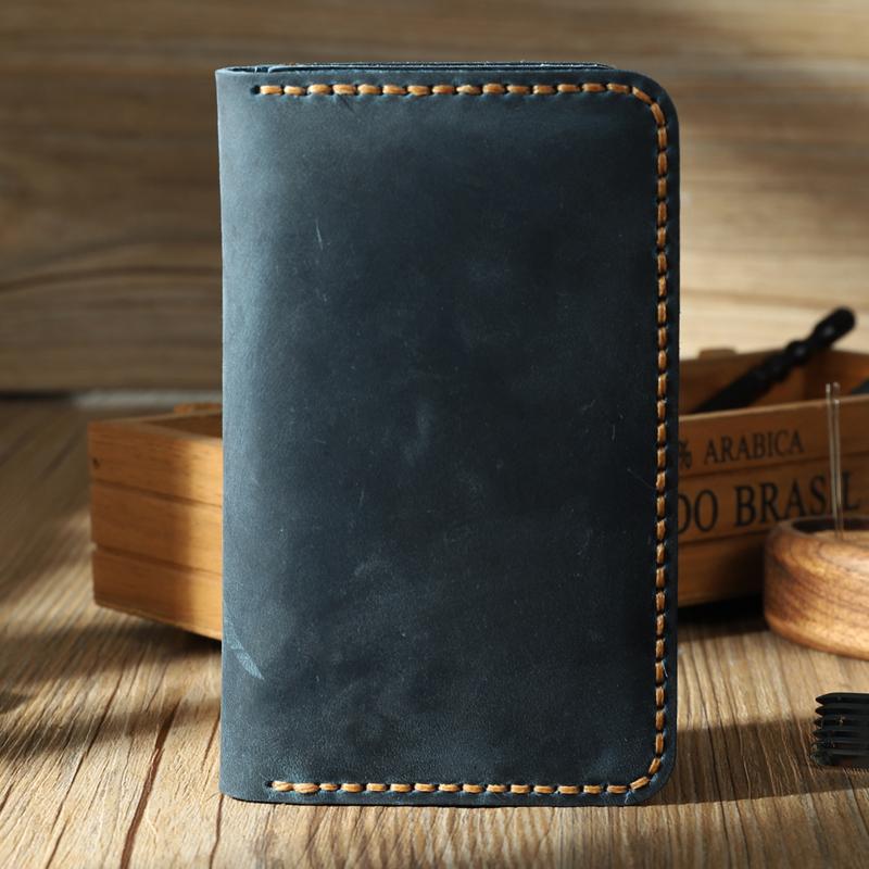 Handmade Blue Leather Mens Card Holders Wallet Personalized Bifold Card Wallets for Men