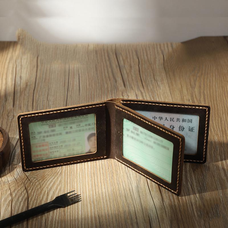 Design: Handmade Vintage Leather Mens Licenses Wallet Personalized Bifold License Cards Wallets for Men