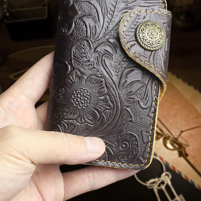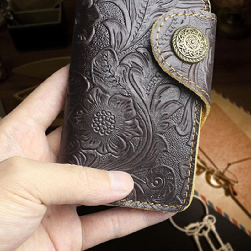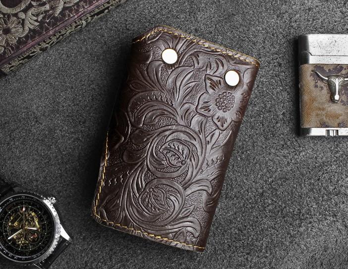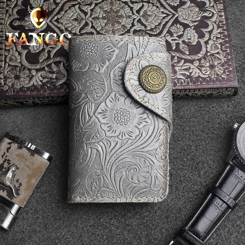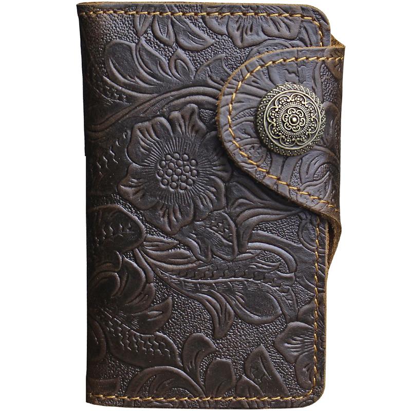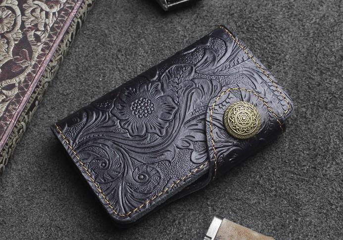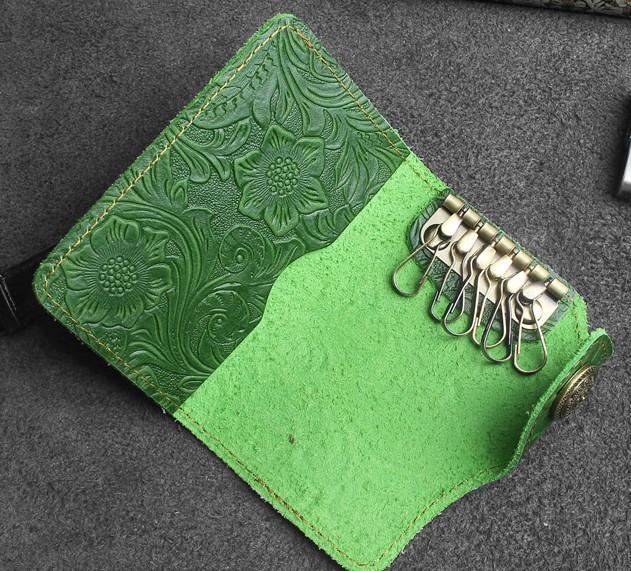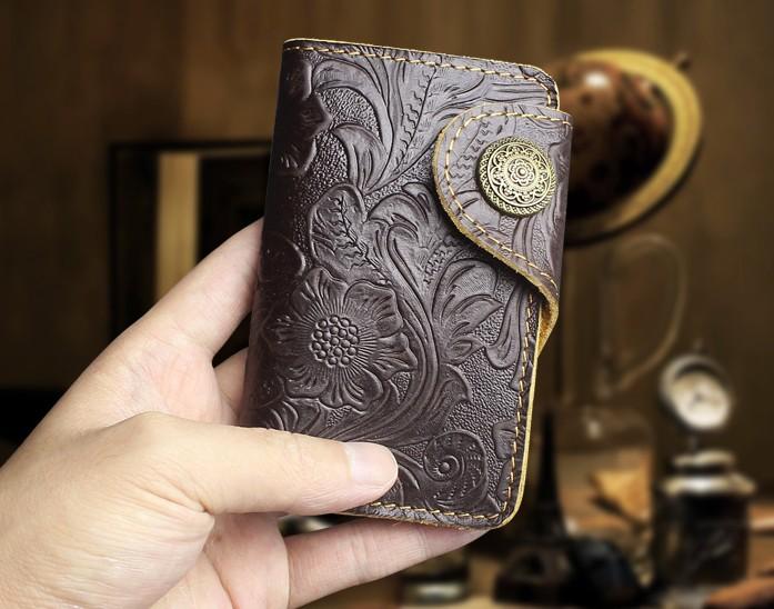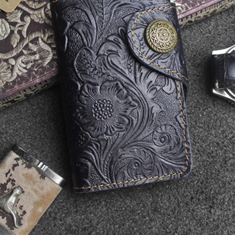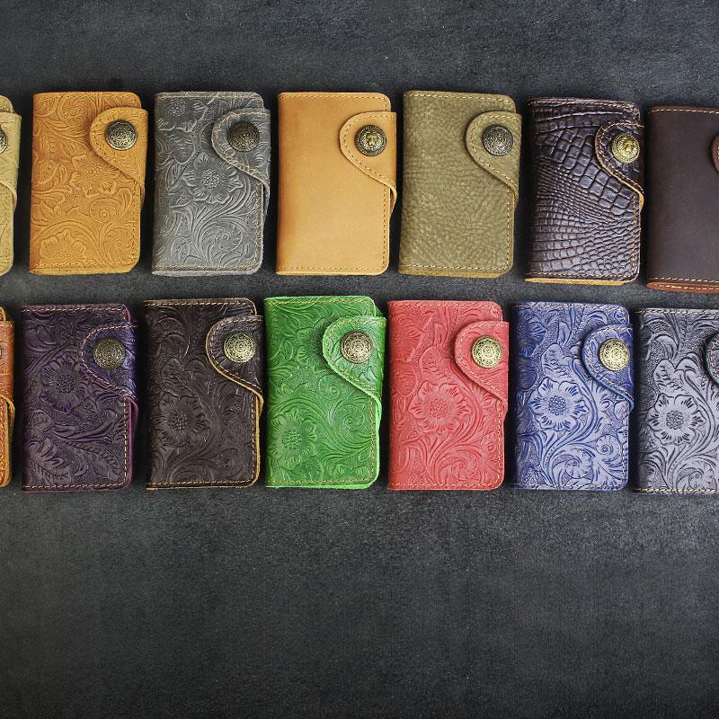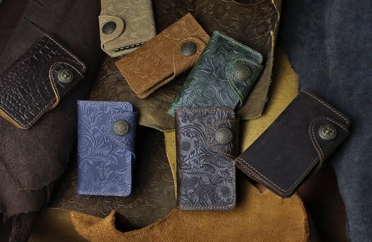 Design: Handmade Leather Floral Mens Cool Key Wallet Wallet Card Holder Small Card Keychain Wallets for Men