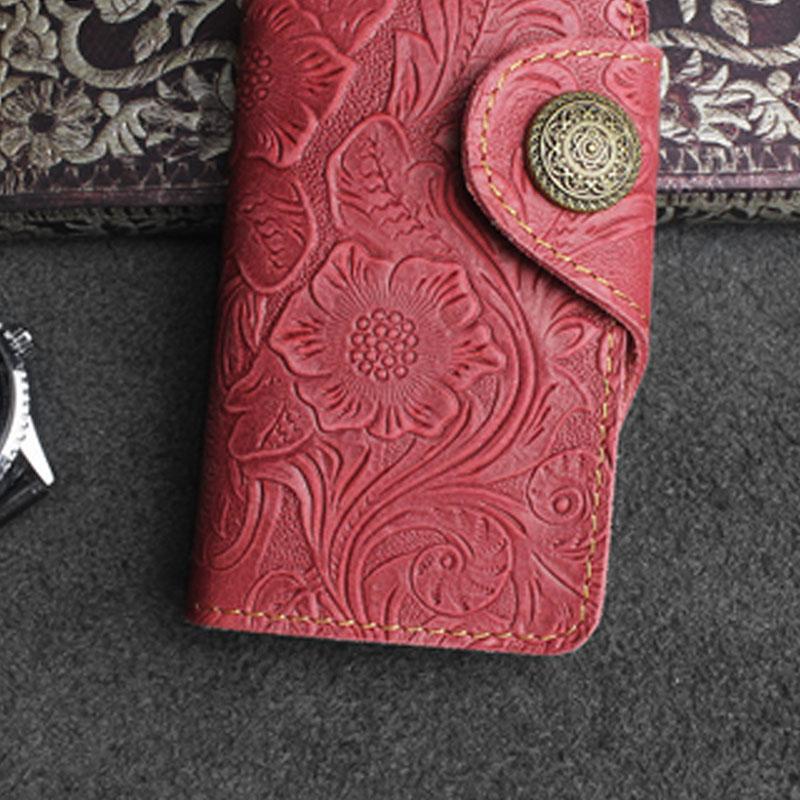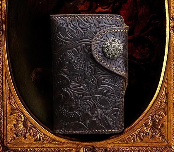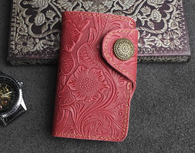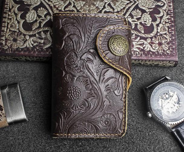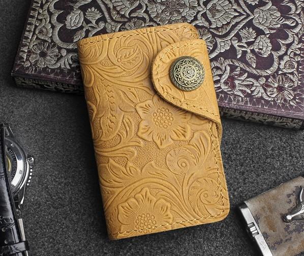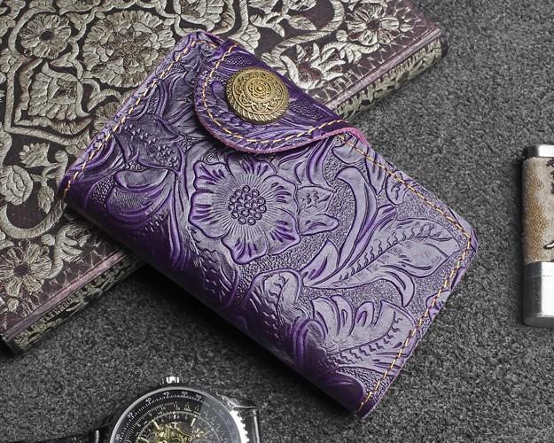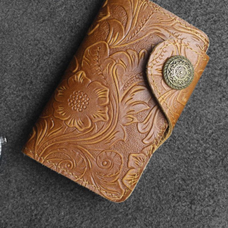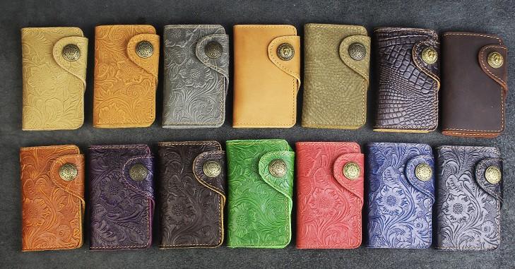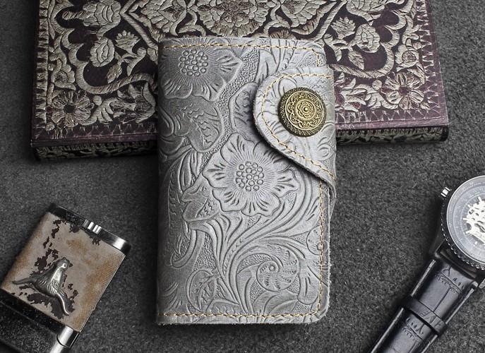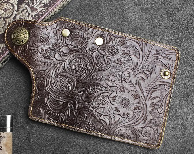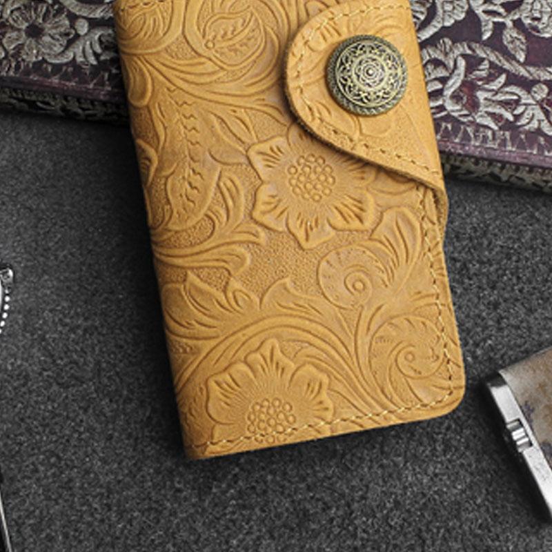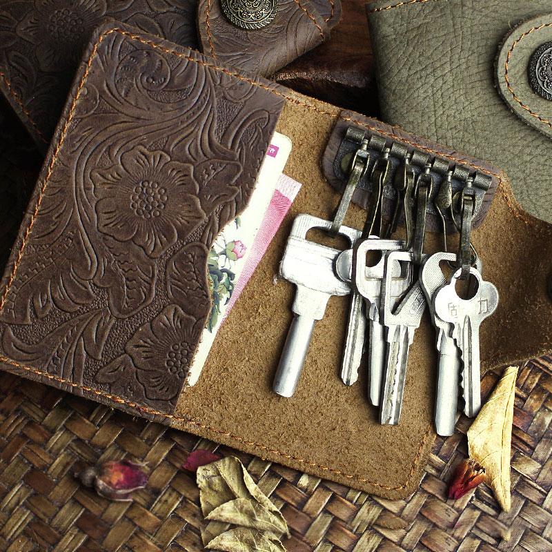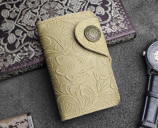 Design: Handmade Leather Floral Mens Cool Key Wallet Wallet Card Holder Small Card Keychain Wallets for Men