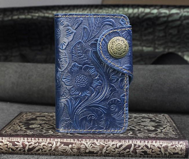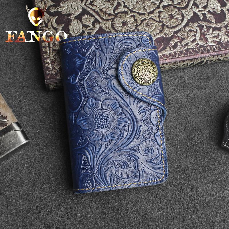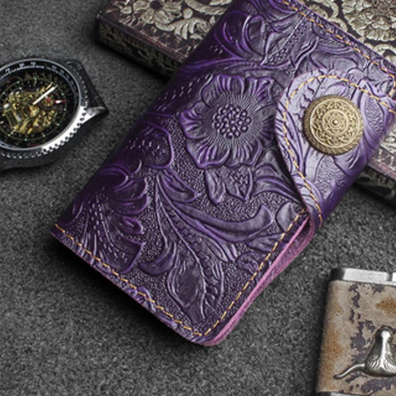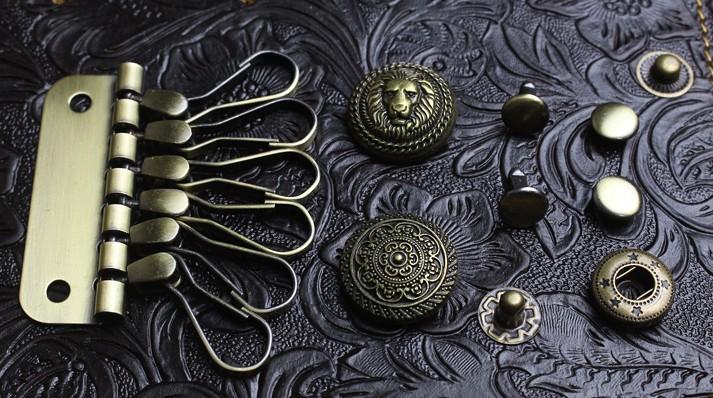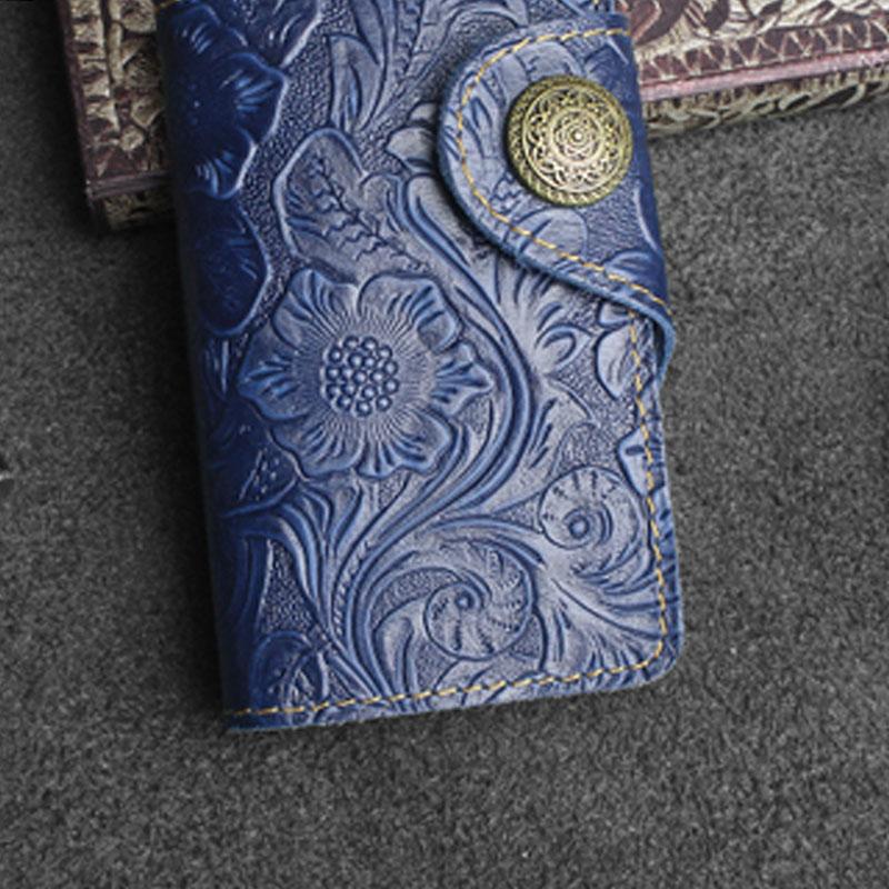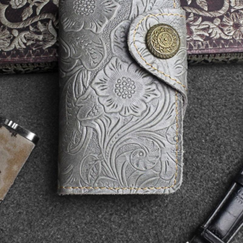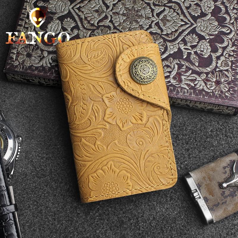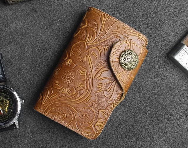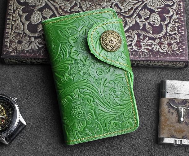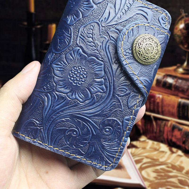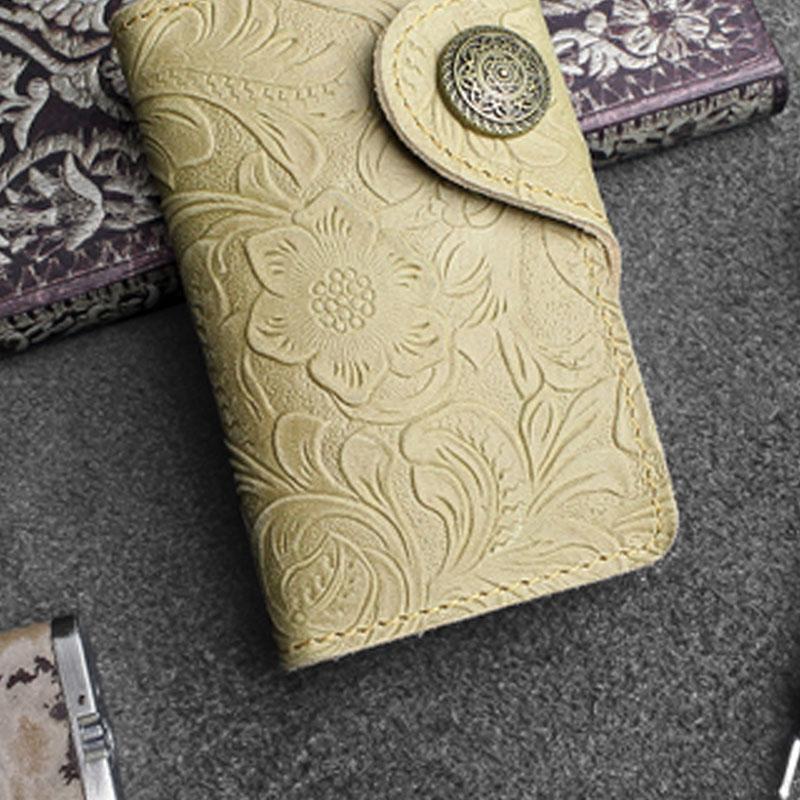 Design: Handmade Leather Floral Mens Cool Key Wallet Wallet Card Holder Small Card Keychain Wallets for Men