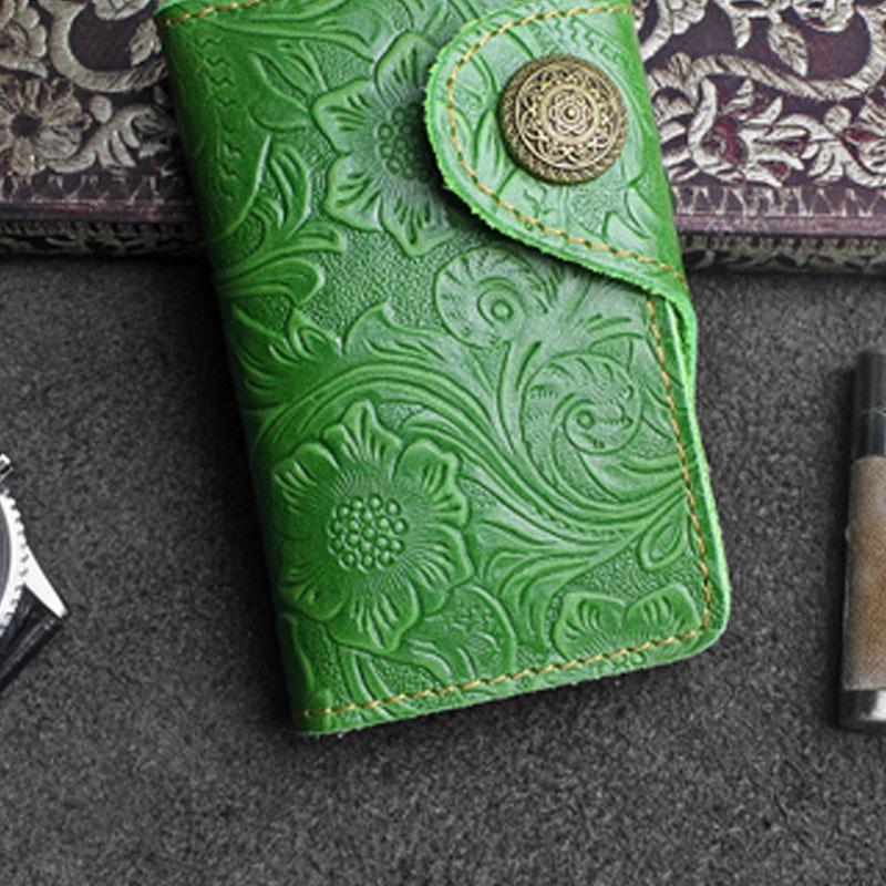 Style: Handmade Leather Floral Mens Cool Key Wallet Wallet Card Holder Small Card Keychain Wallets for Men