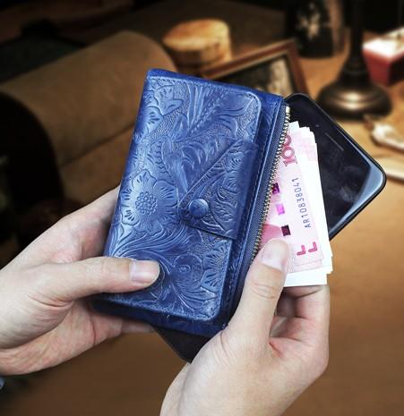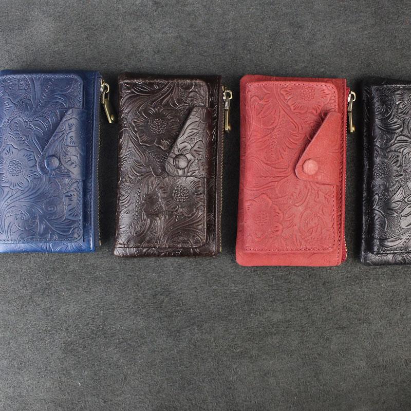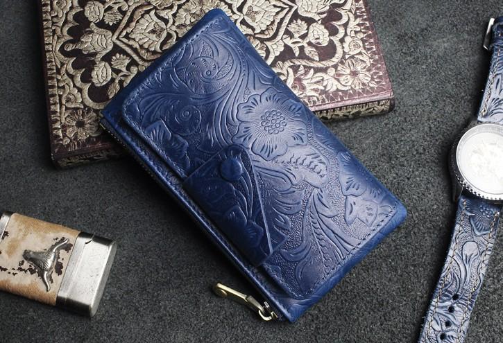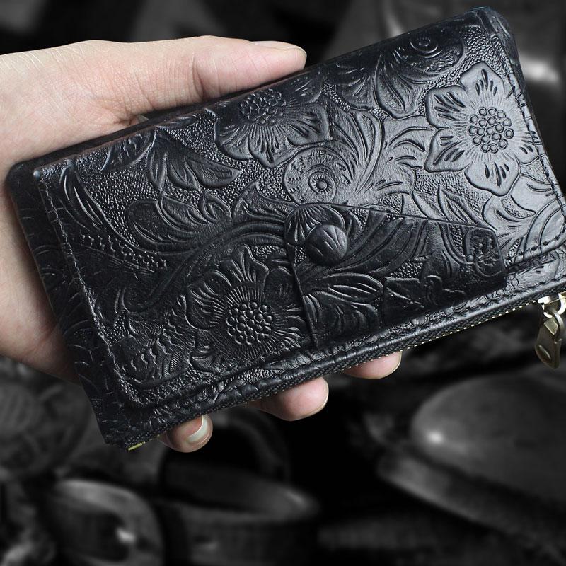 Design: Handmade Leather Floral Mens Cool Key Wallet Wallet Card Holder Small Card Keychain Wallets for Men
