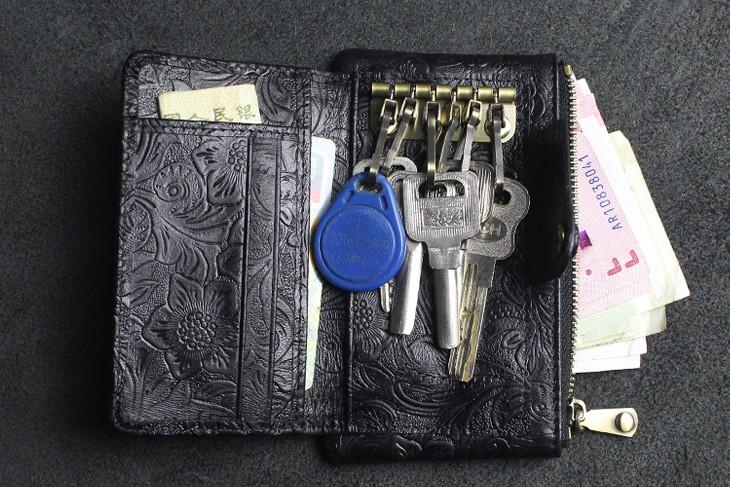 Slots: 4?half size bill slot/Card slot, 6 key holders, 1 Zipper Slot