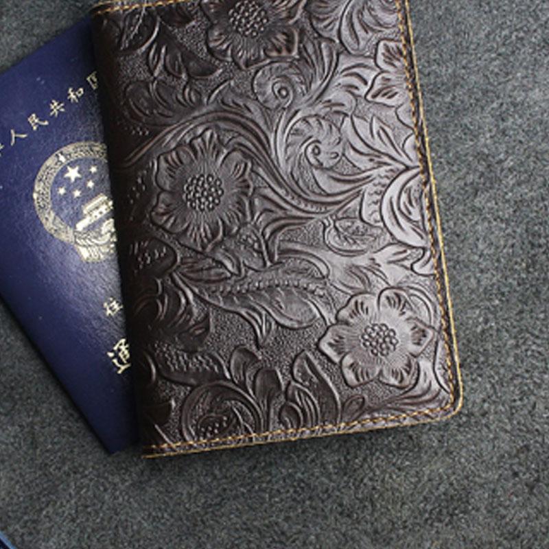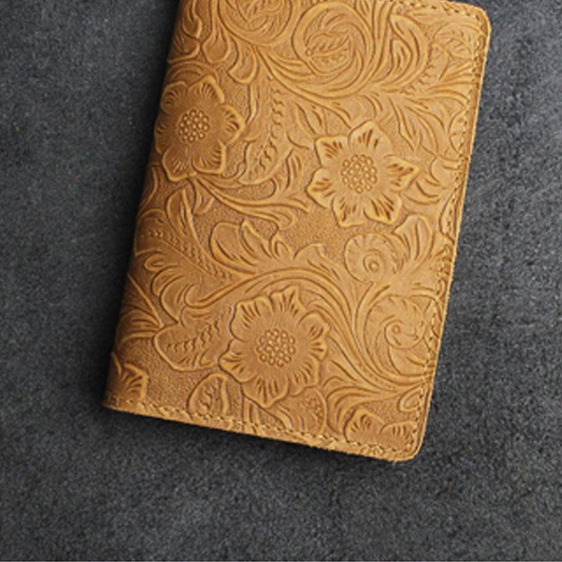 Design: Handmade Leather Floral Mens Cool Short Wallet Passport Card Holder Small Card Slim Wallets for Men