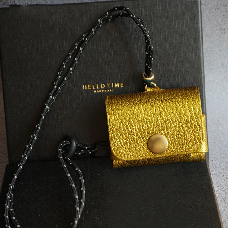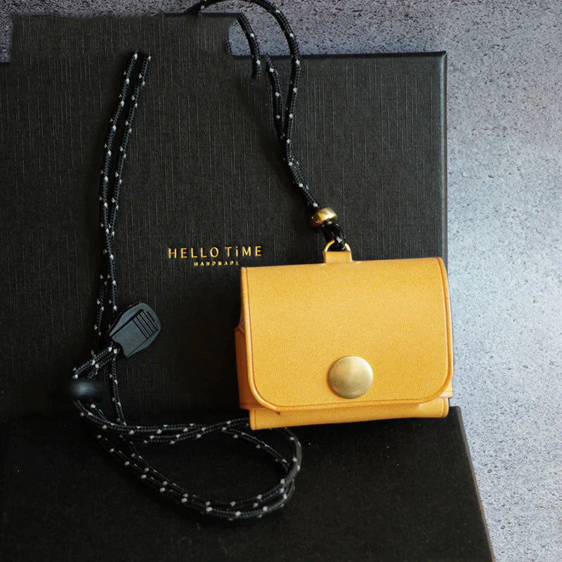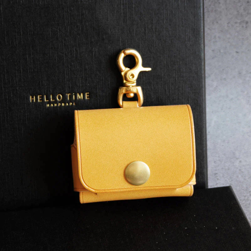 Yellow Mens Handmade Leather AirPods Pro Case With Clip For Men and Women
