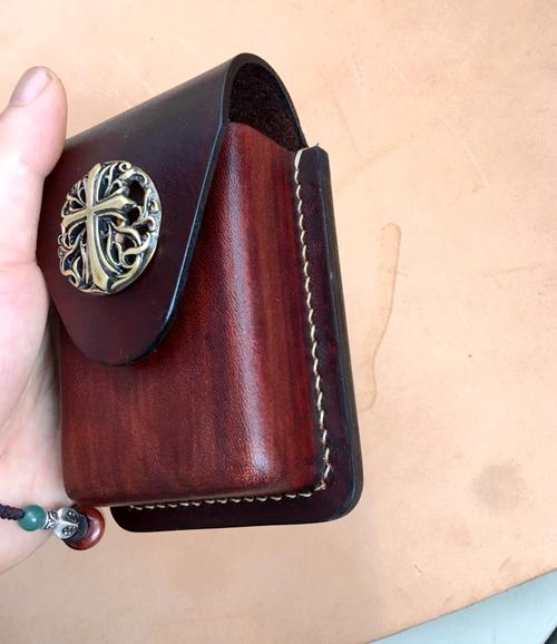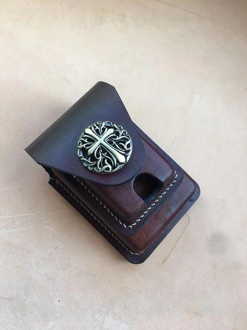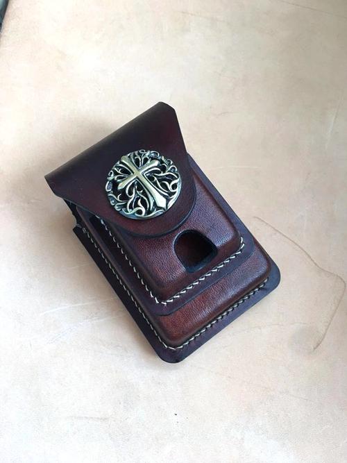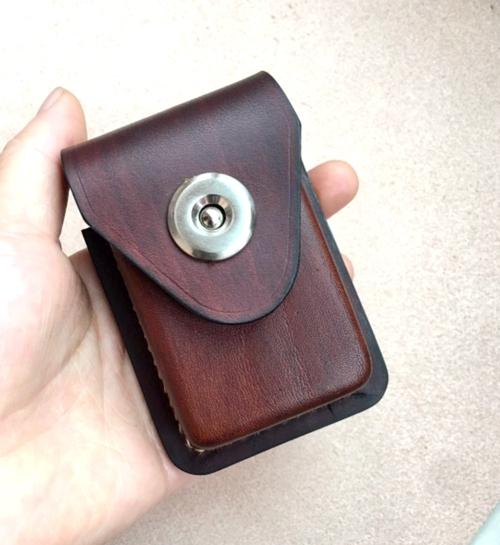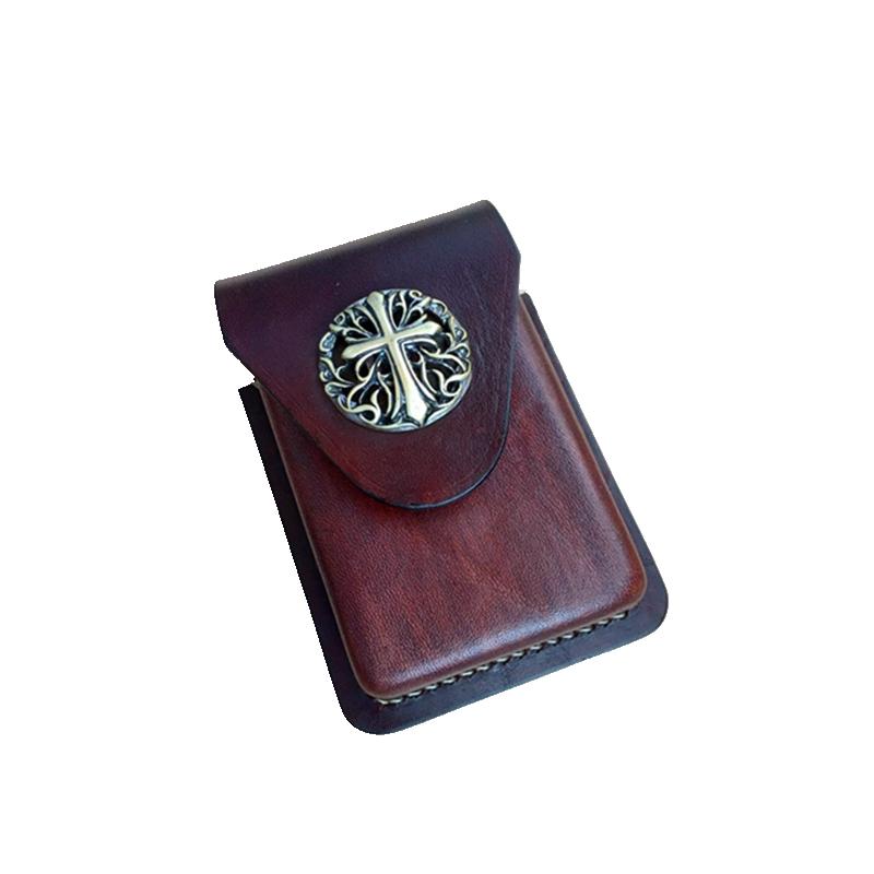 Design: Brown Leather Cigarette Case with Lighter Cover Magnetic Buckle Protective Lighter Cover For Men
