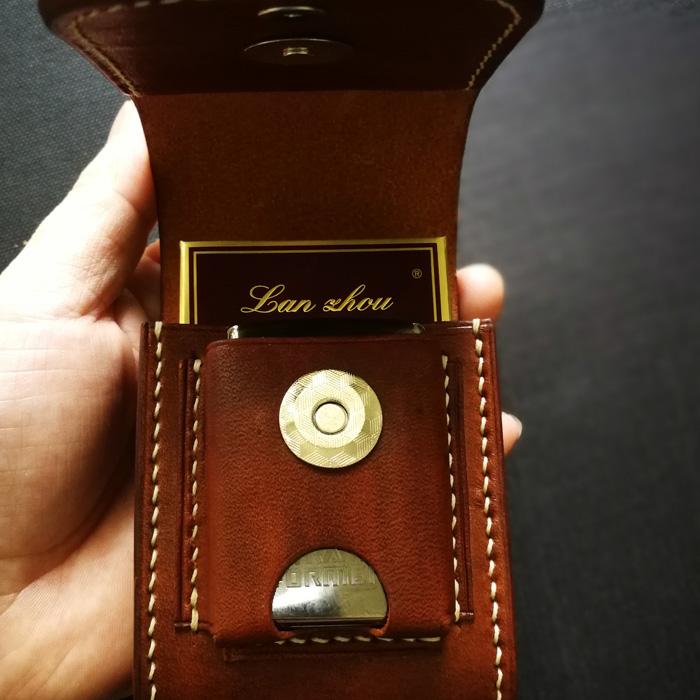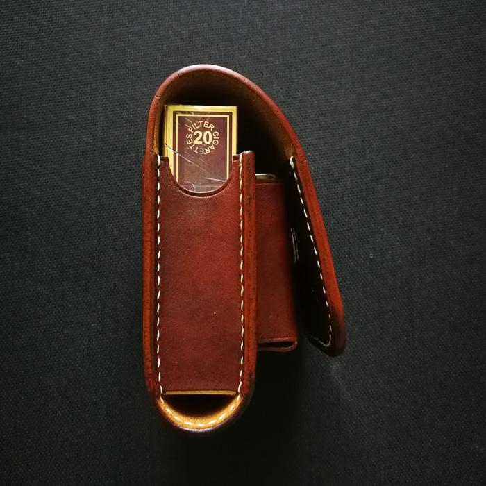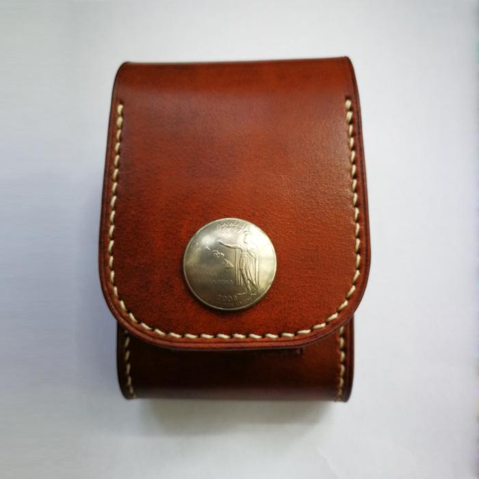 Design: Brown Leather Mens Cigarette Case Cigarette Holder Zippo Light Case with Belt Loop for Men