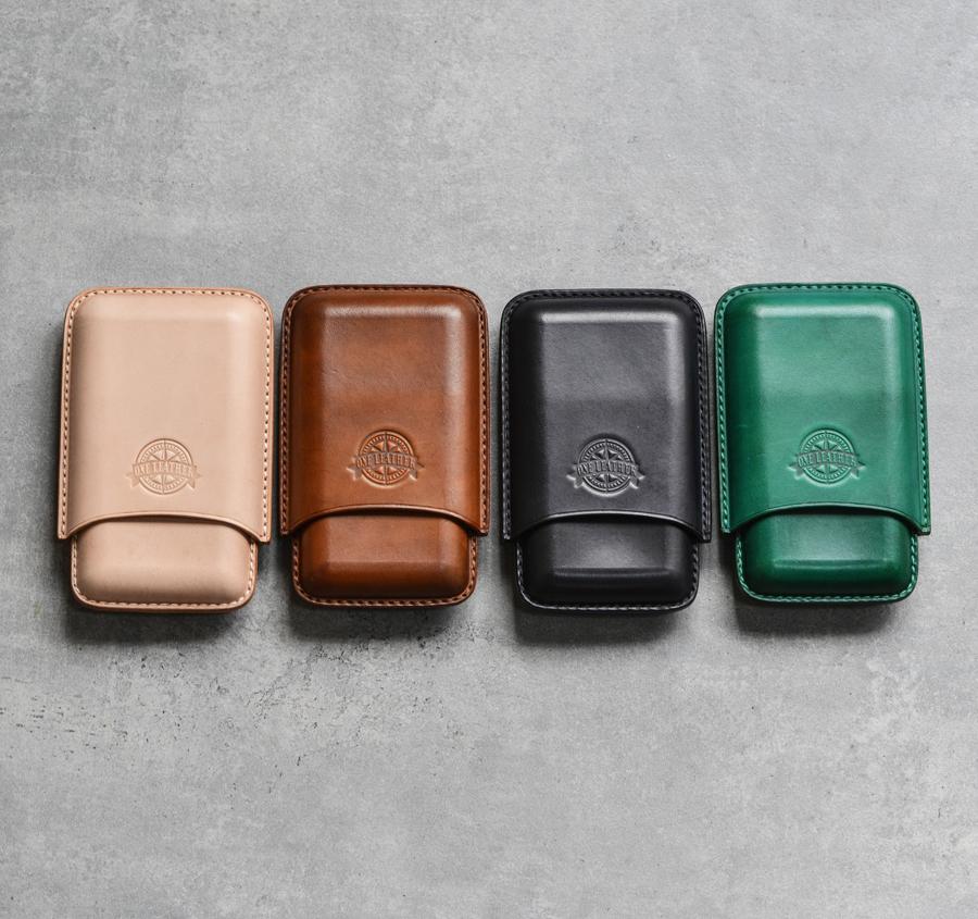 Style: Cool Beige Leather Mens 3pcs Cigar Case Cool Custom Leather Cigar Case for Men