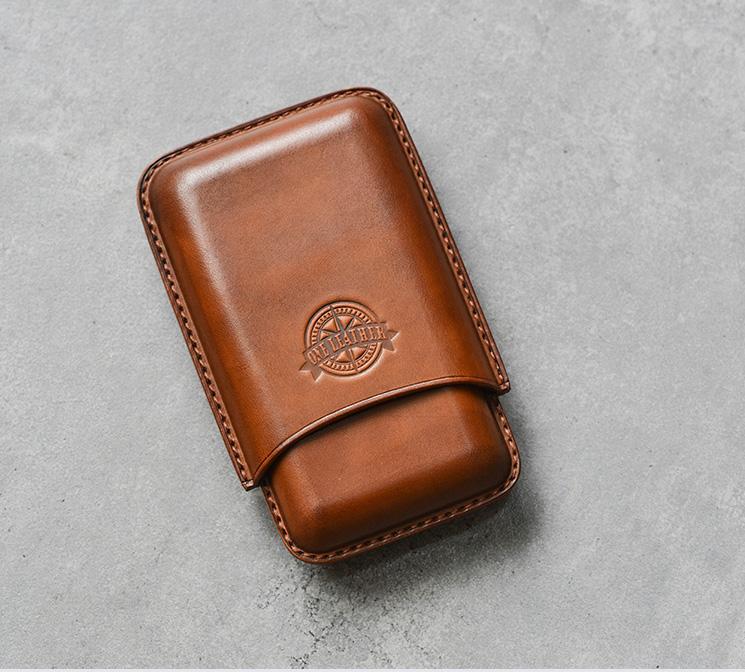Design: Cool Beige Leather Mens 3pcs Cigar Case Cool Custom Leather Cigar Case for Men