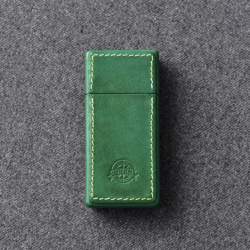 Cool Mens Green Leather Portable Ashtray Travel Ashtray Pocket Ashtray Lighter for Men