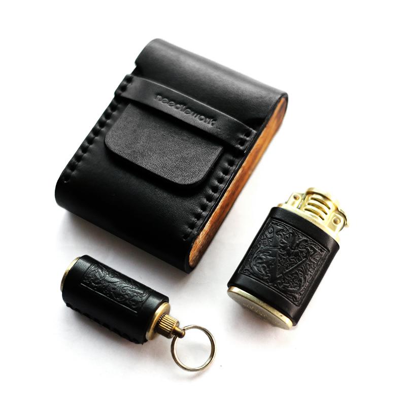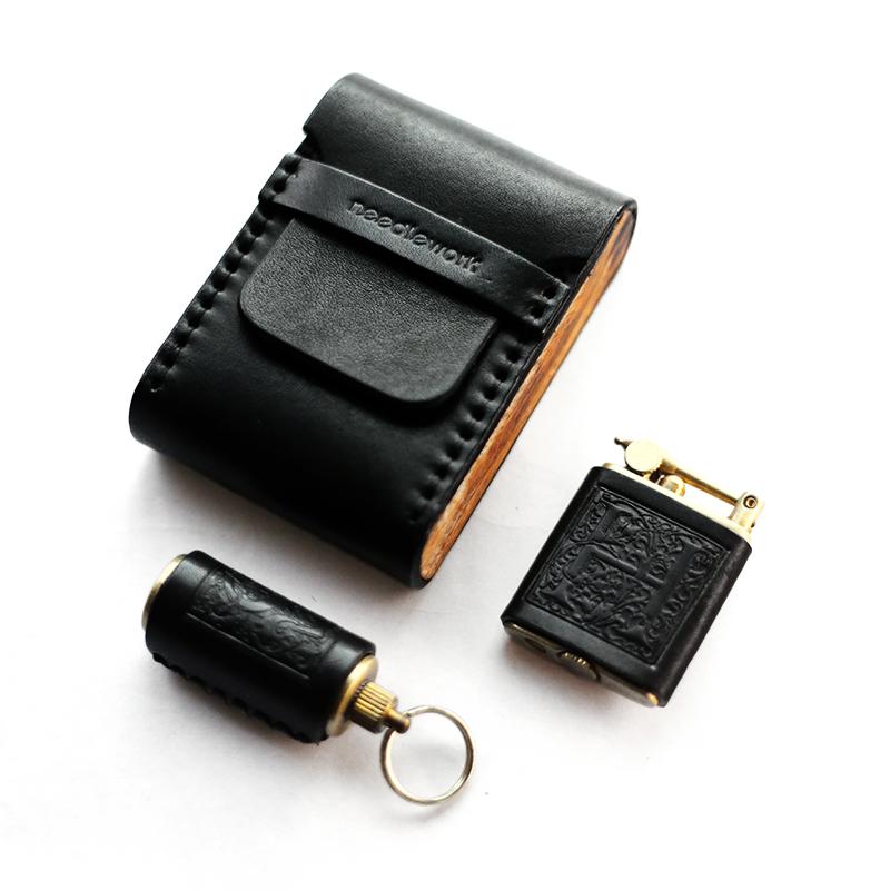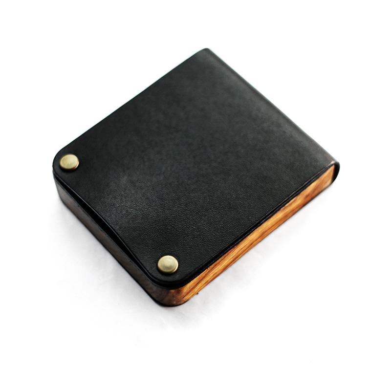 Design: Cool Wooden Black Leather Mens Cigarette Case Custom Cigarette Holder for Men