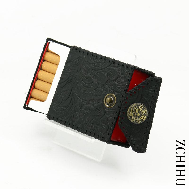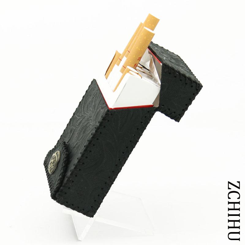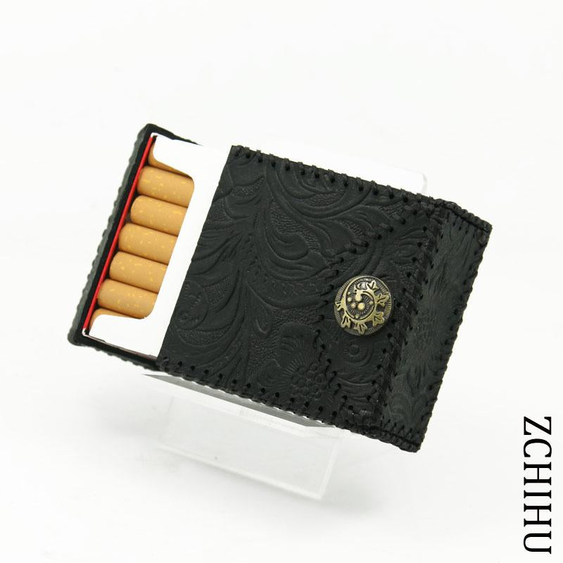 Design: Handmade Cool Leather Mens Black Engraved Cigarette Holder Case Cigarette Holder for Men