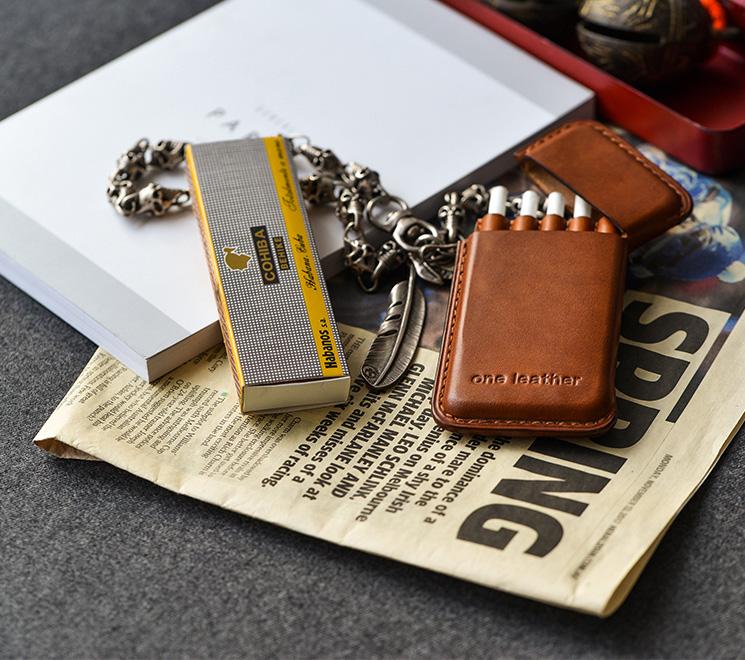 Style: Handmade Green Leather Womens 5pcs Cigarette Holder Case Cool Custom Cigarette Case for Women