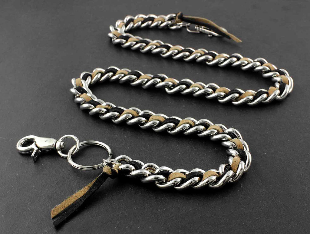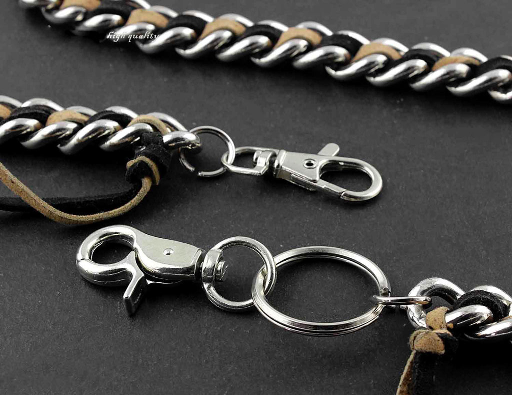 Solid Stainless Steel Leather Braided Long Wallet Chain Cool Punk Rock Biker Trucker Wallet Chain Trucker Wallet Chain for Men
