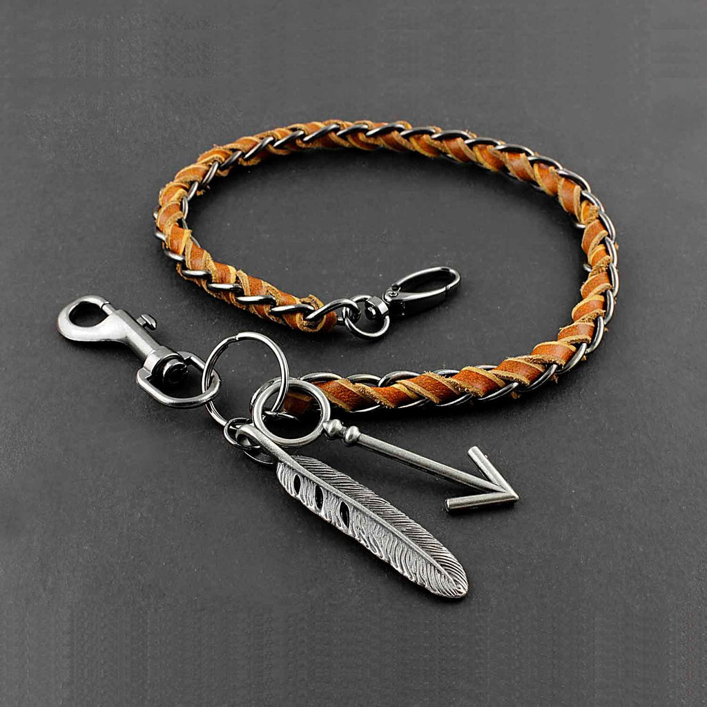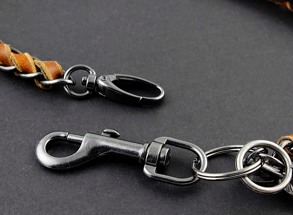 Solid Stainless Steel Leather Braided Long Wallet Chain Cool Punk Rock Biker Trucker Wallet Chain Trucker Wallet Chain for Men
