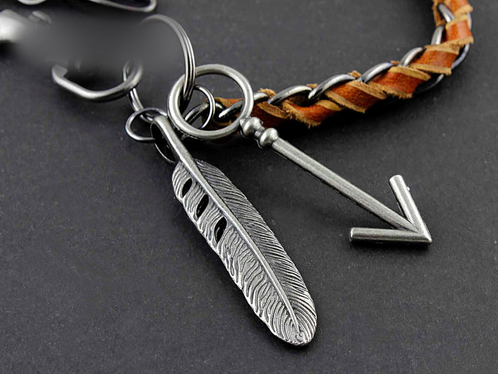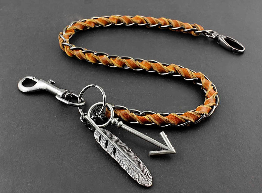 Design:? Solid Stainless Steel Leather Braided Long Wallet Chain Cool Punk Rock Biker Trucker Wallet Chain Trucker Wallet Chain for Men