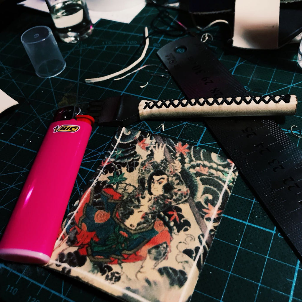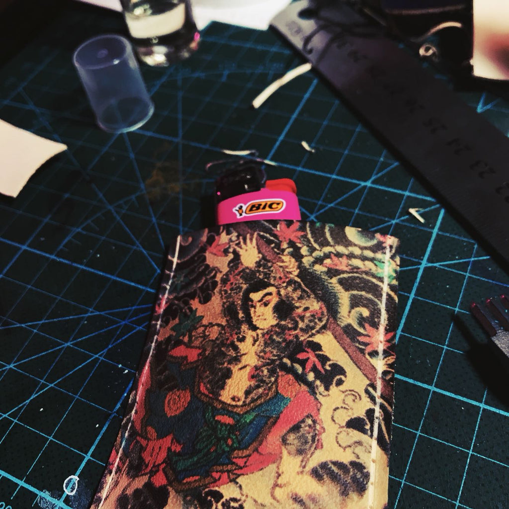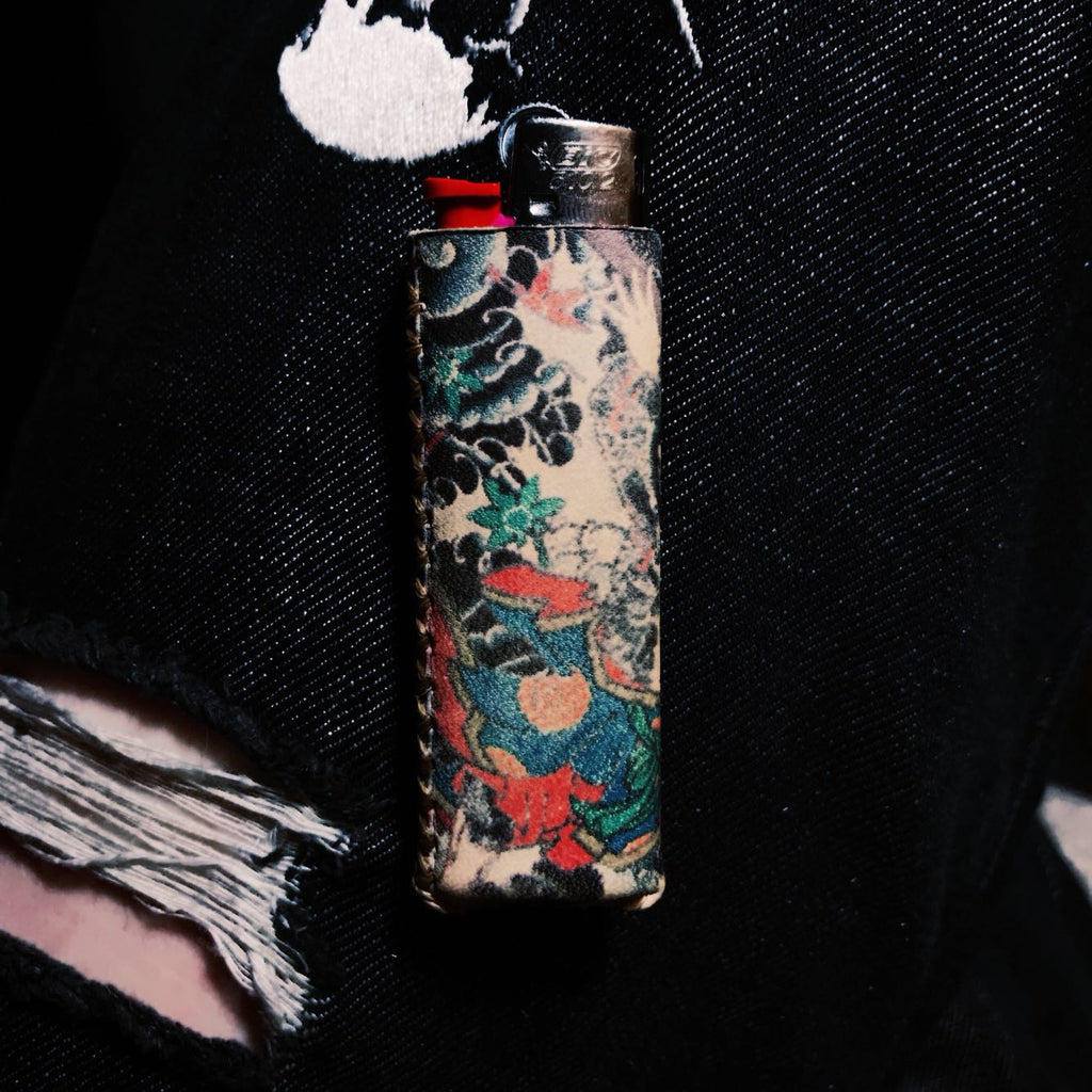 Design: Bic Leather Lighter Case Japanese samurai Leather Bic Lighter Holder Leather Bic Lighter Covers For Men