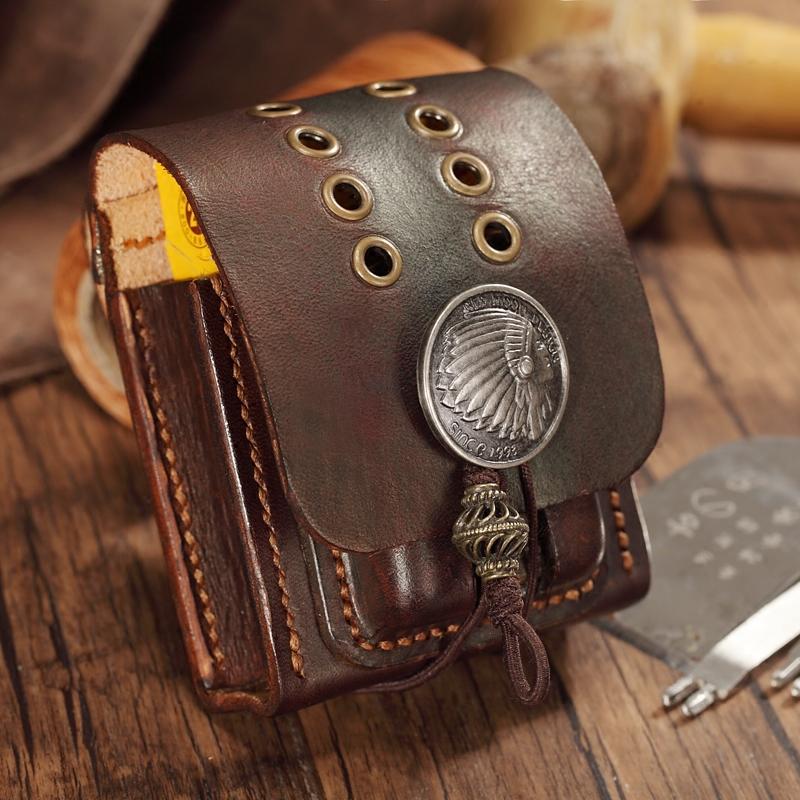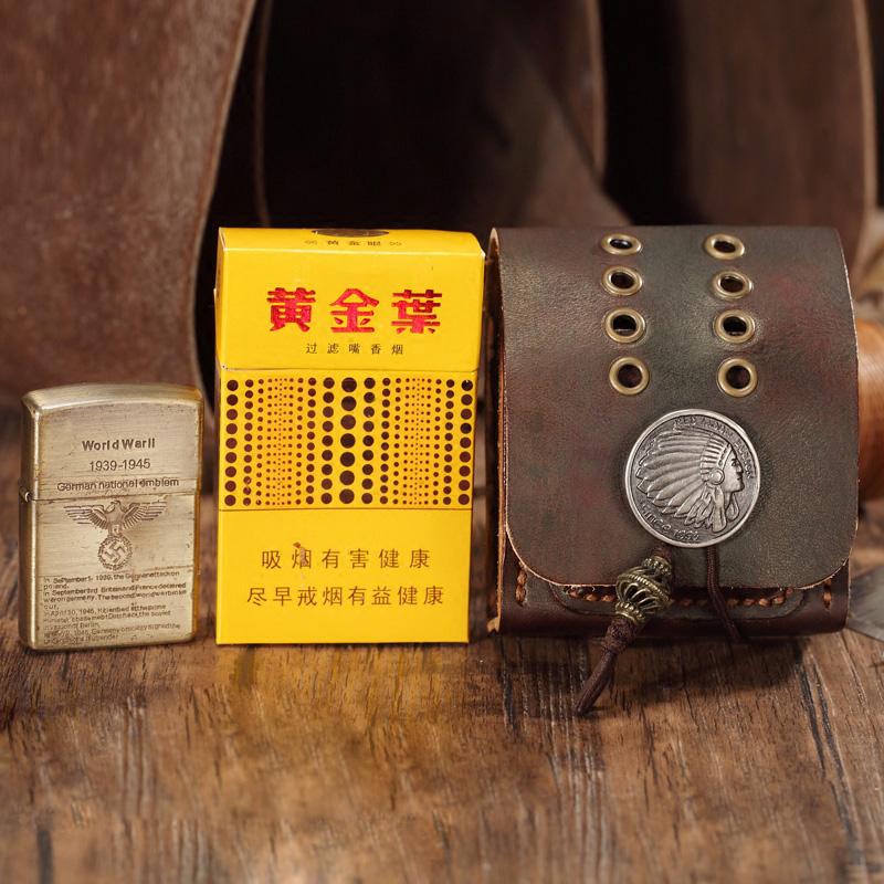 Design: Cool Mens Leather Indian CIGARETTE HOLDER CASE WITH Zippo LIGHTER HOLDER FOR MEN