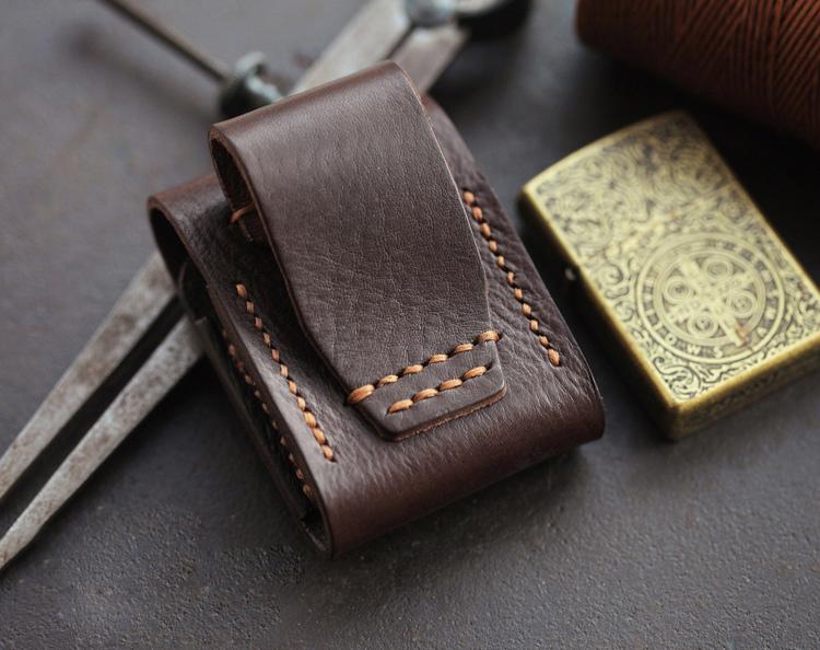Style: Cool Star Dark Brown Leather Mens Holster Zippo Lighter Cases Standard Zippo Lighter Holder Belt Clip For Men