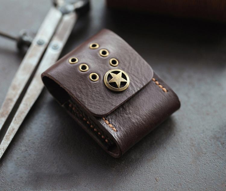 Design: Cool Star Dark Brown Leather Mens Holster Zippo Lighter Cases Standard Zippo Lighter Holder Belt Clip For Men